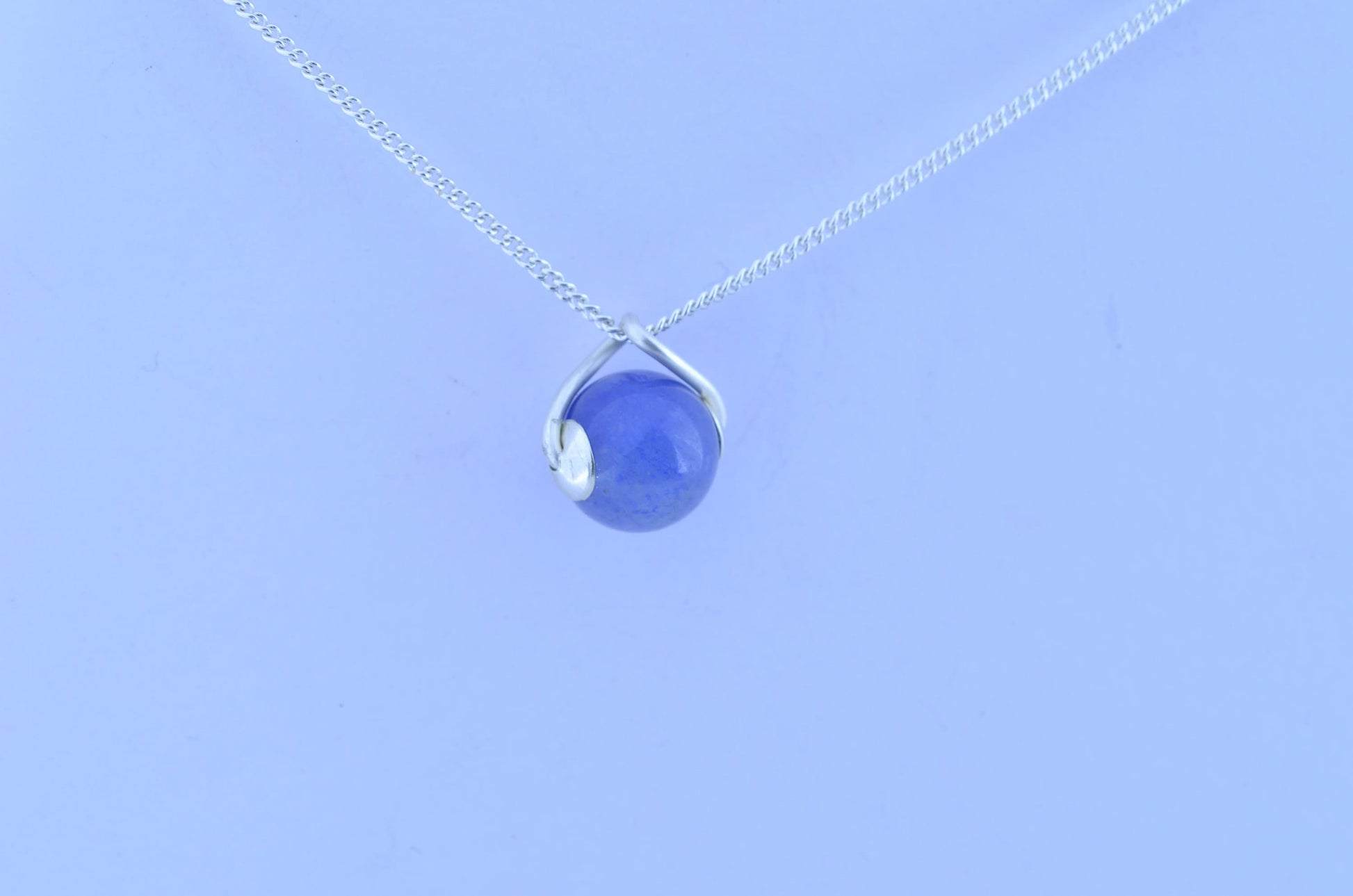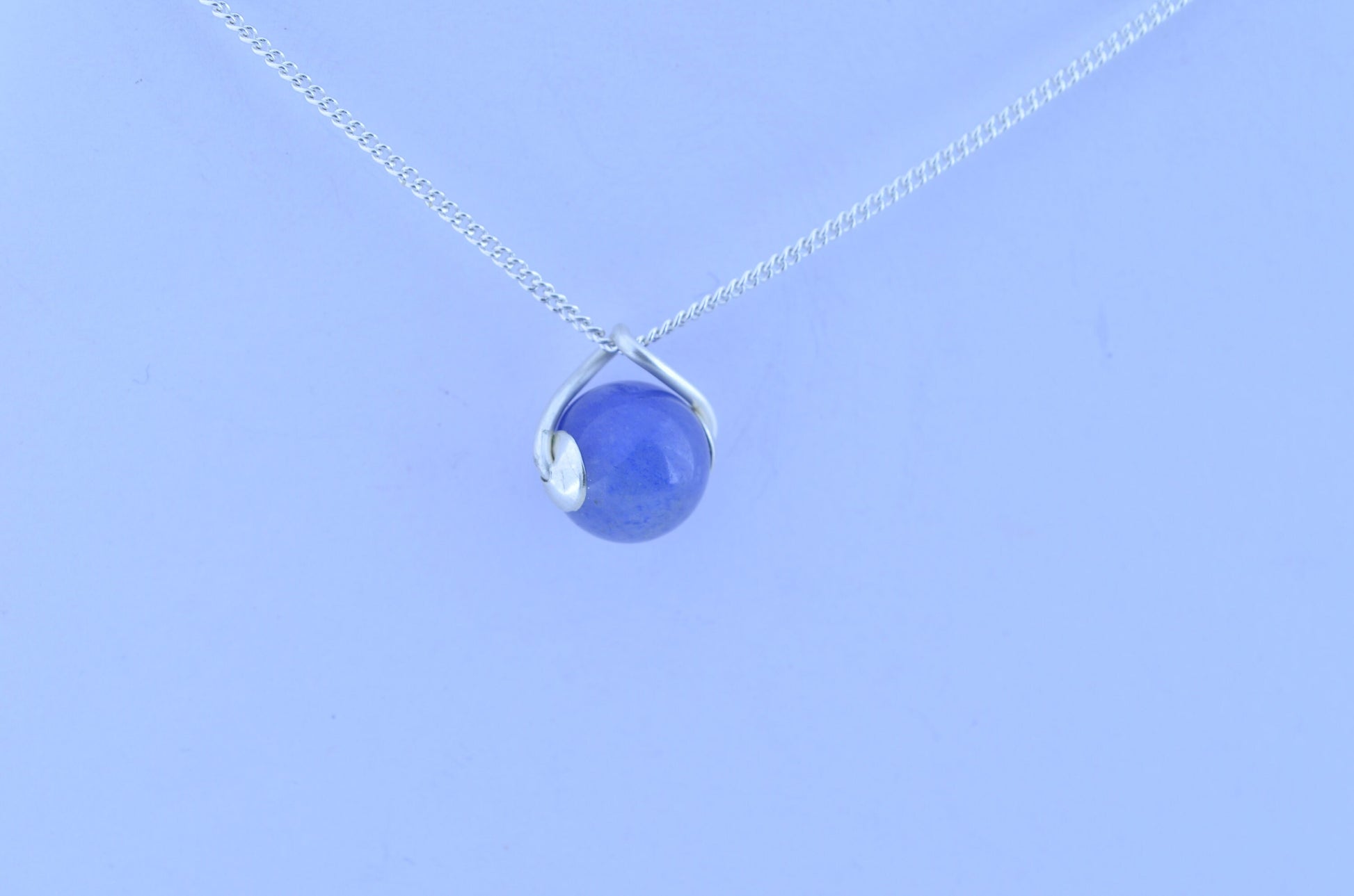 Handmade from solid sterling silver and natural blue small agate pendant.