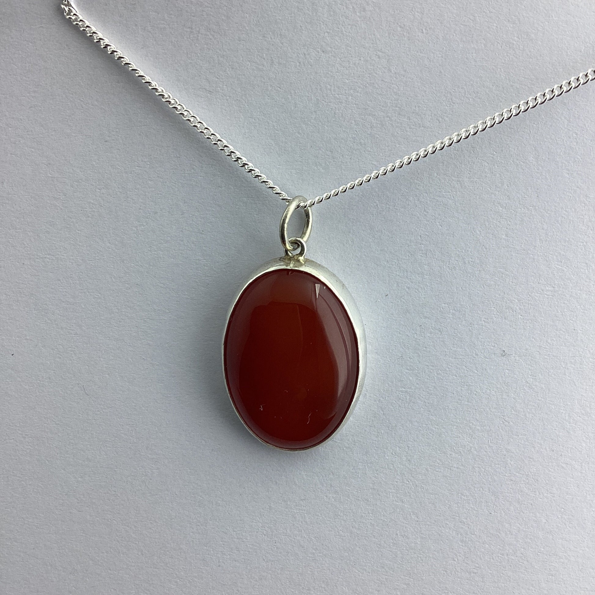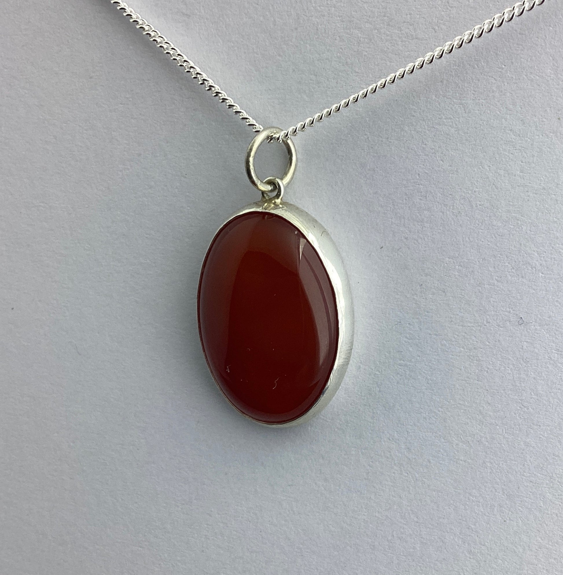 carnelian pendant, solid sterling silver necklace, oval natural red gemstone, 18” chain