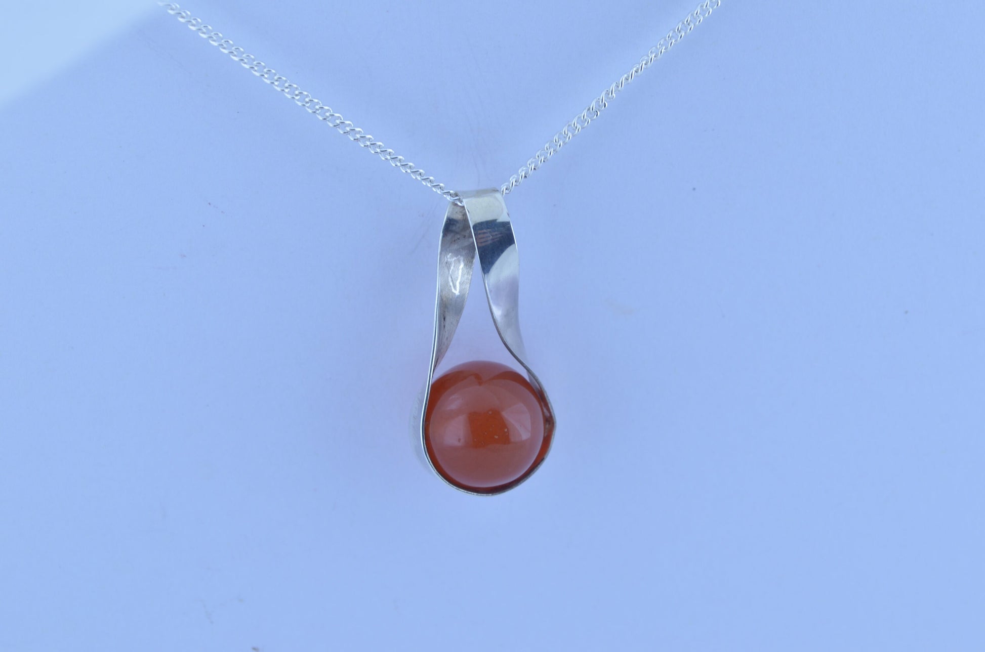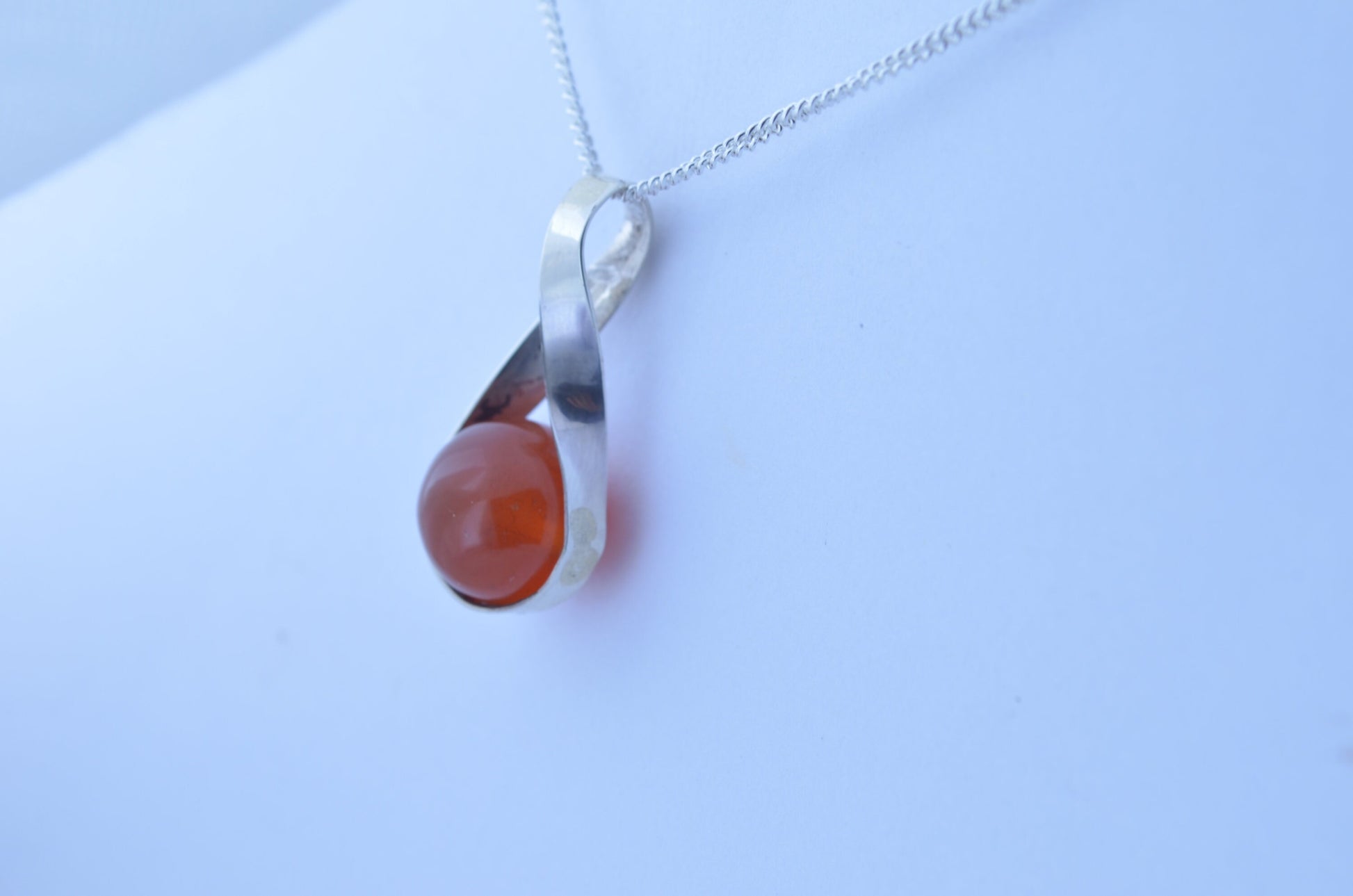 carnelian silver necklace, round natural red gemstone pendant, 18” chain