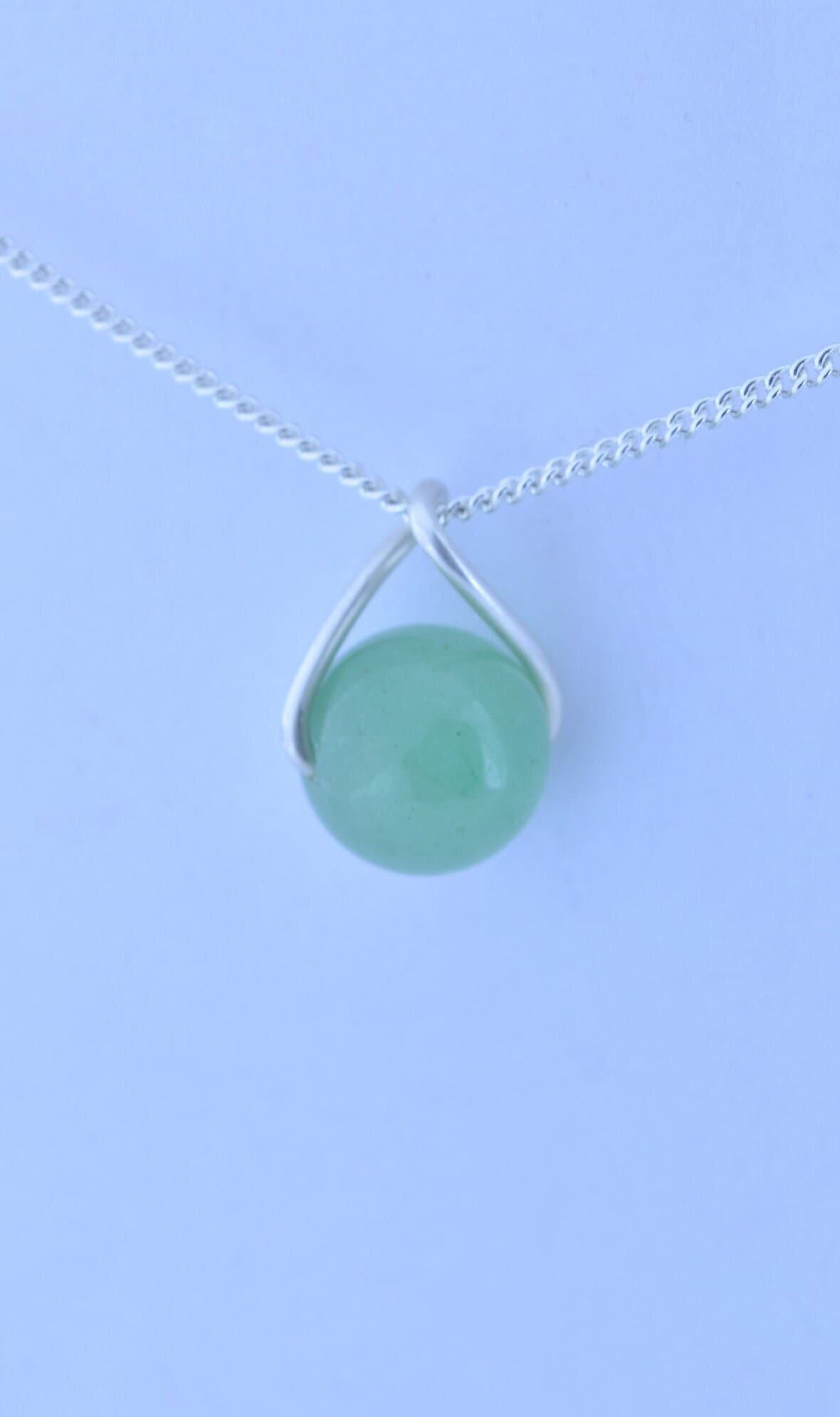 green aventurine pendant, silver necklace, natural round shape gemstone, 18” chain
