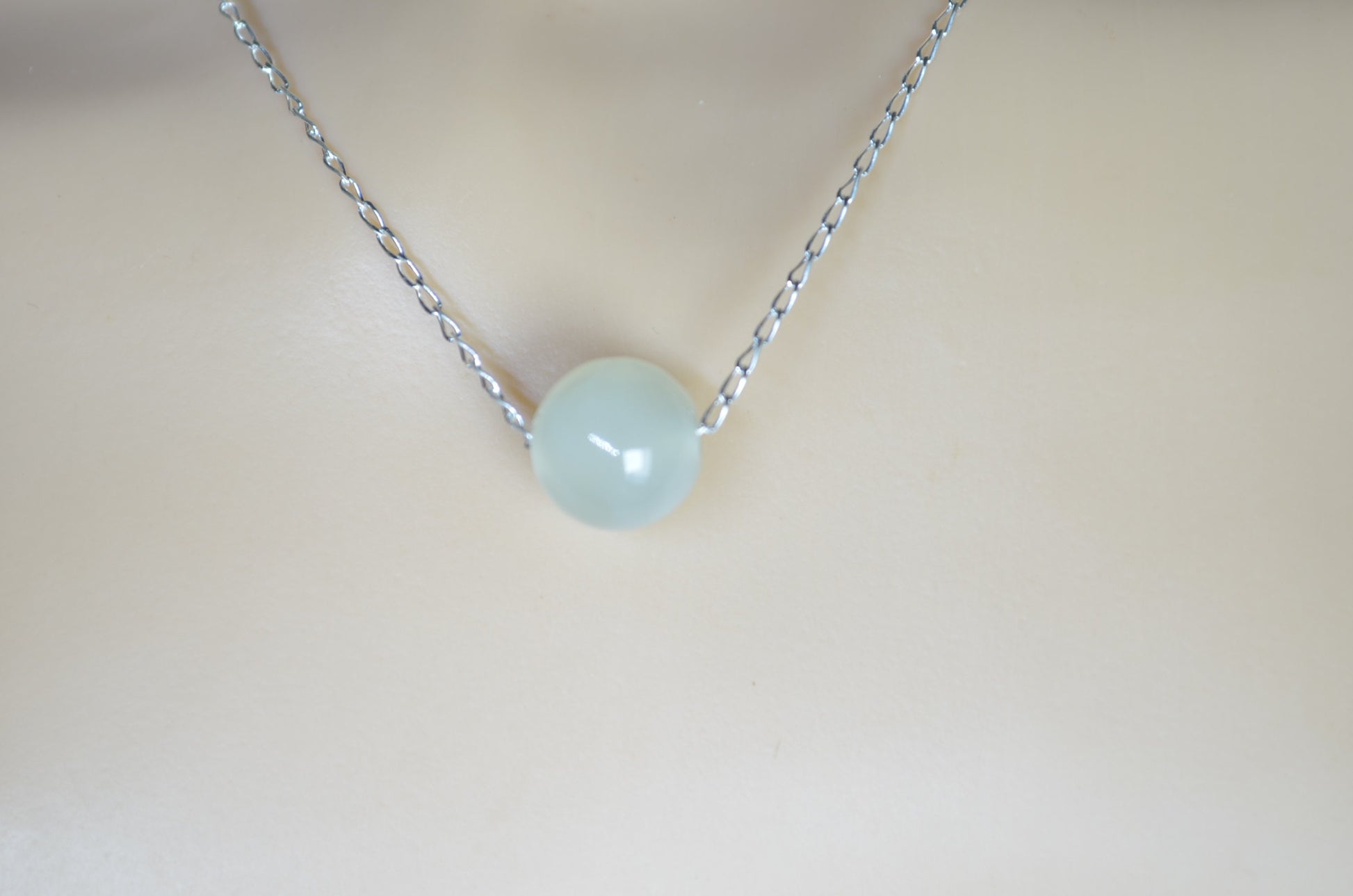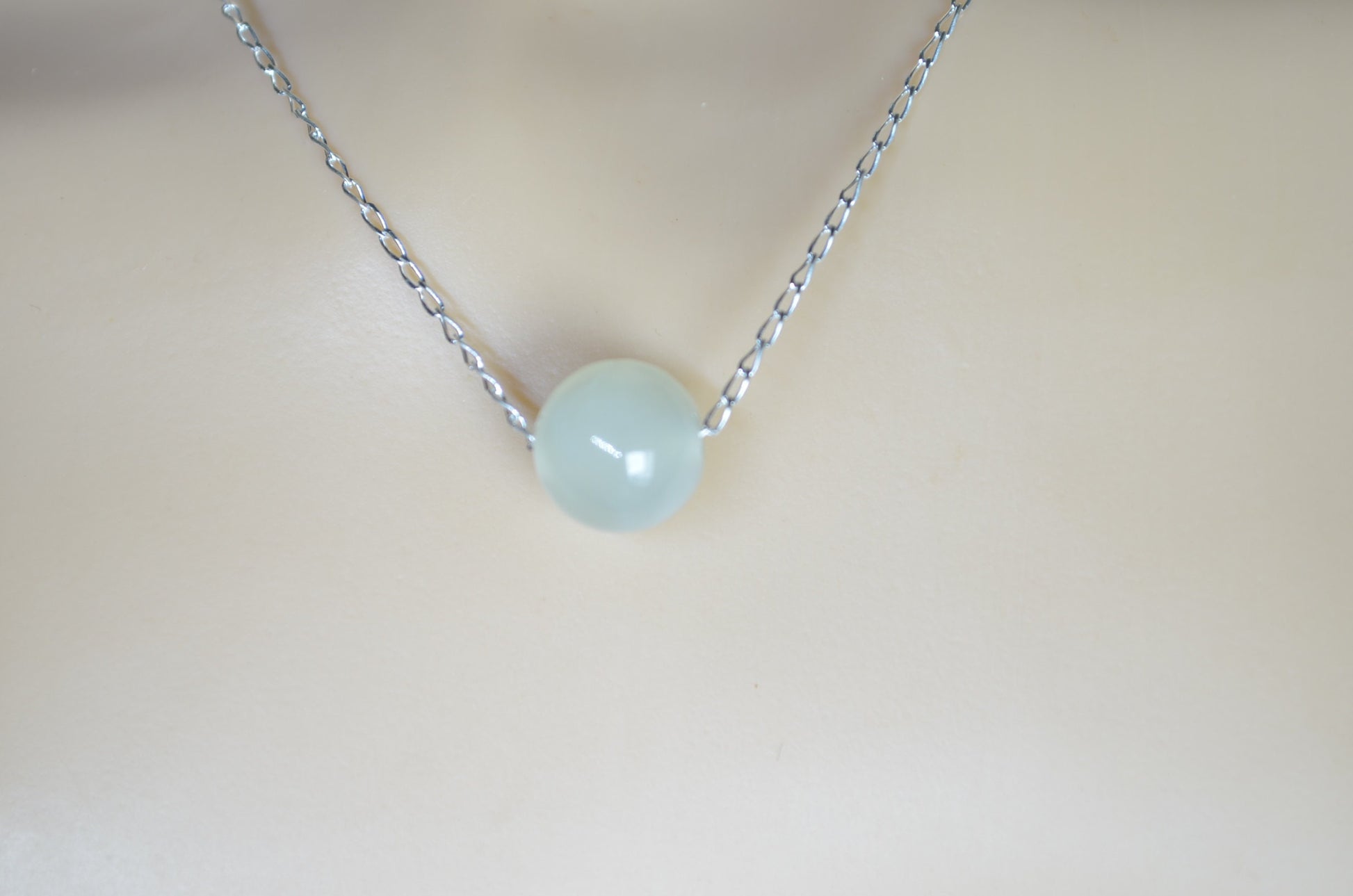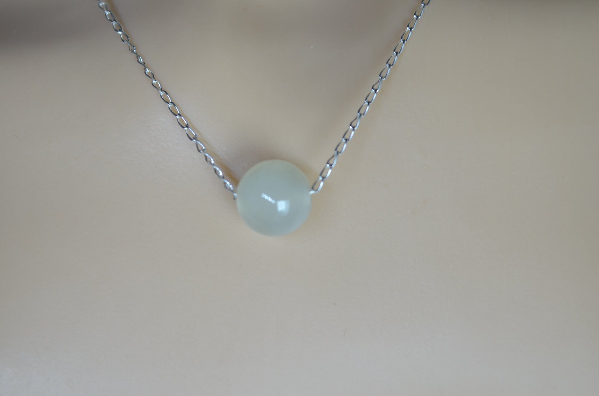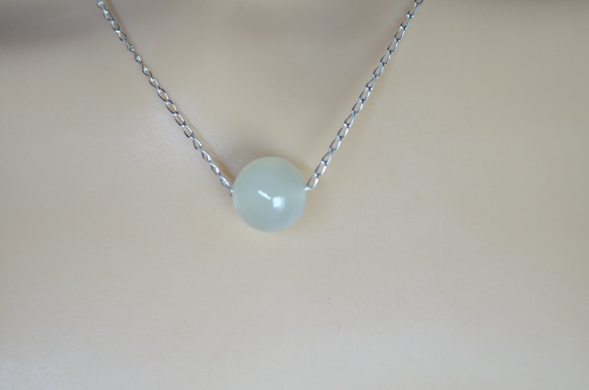 jade bead silver and solid sterling silver chain necklace, bell shape light green natural gemstone