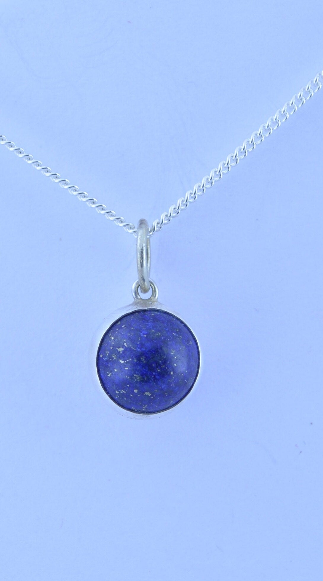 lapis lazuli pendant and solid 925 sterling silver chain necklace, bell shape natural blue gemstone