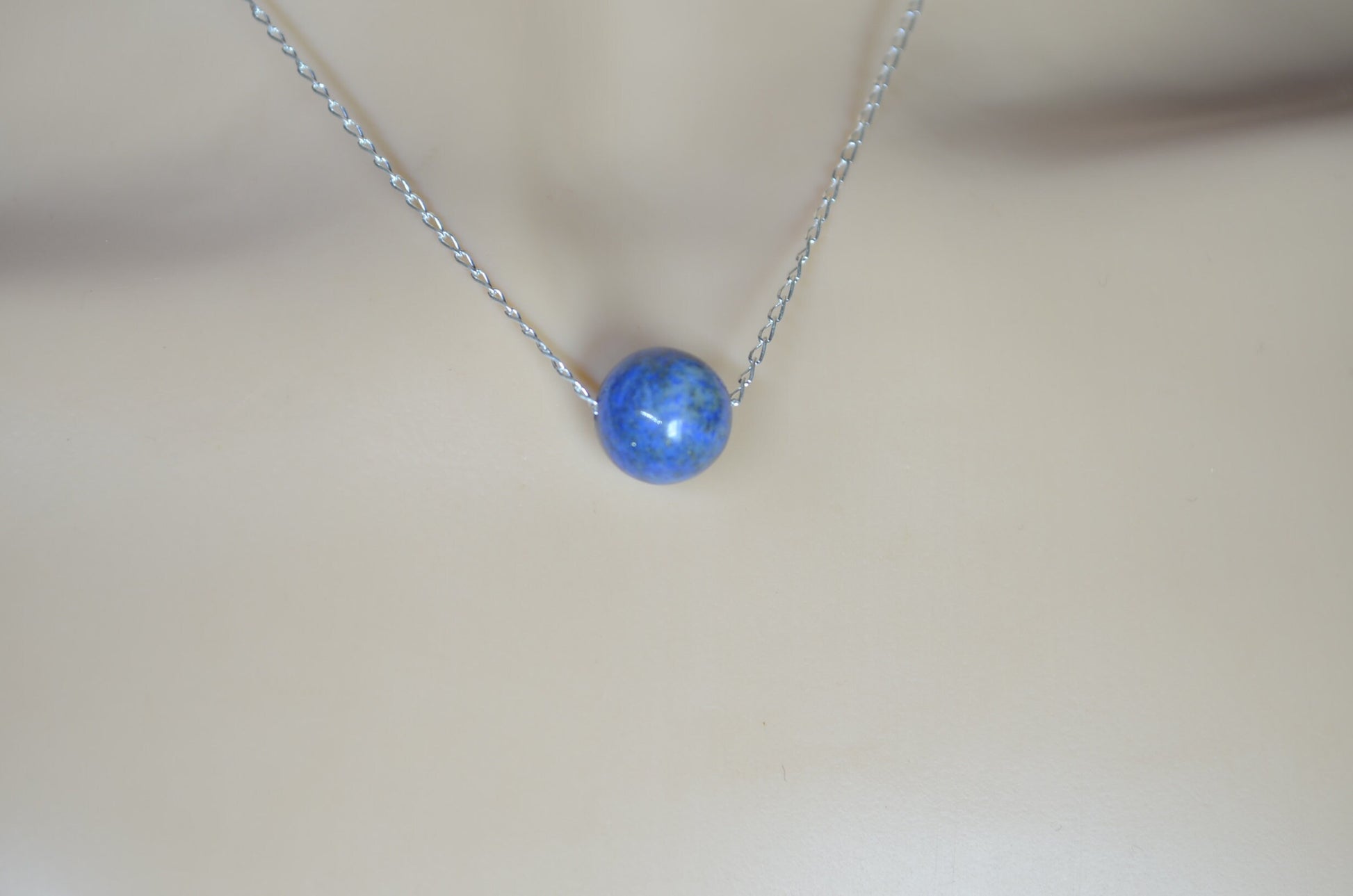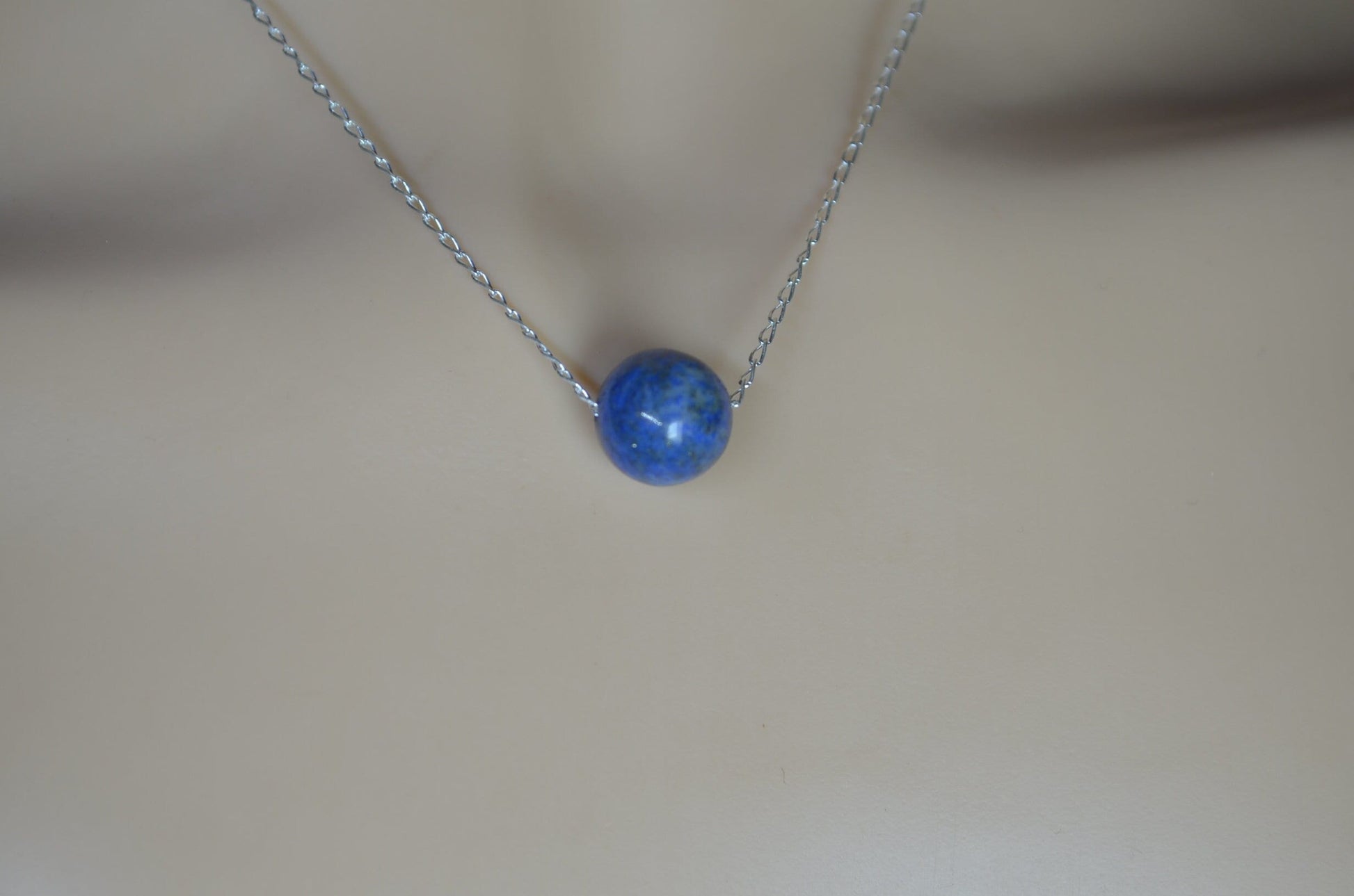 lapis lazuli silver necklace, blue round shape bead, natural gemstone, 18” chain