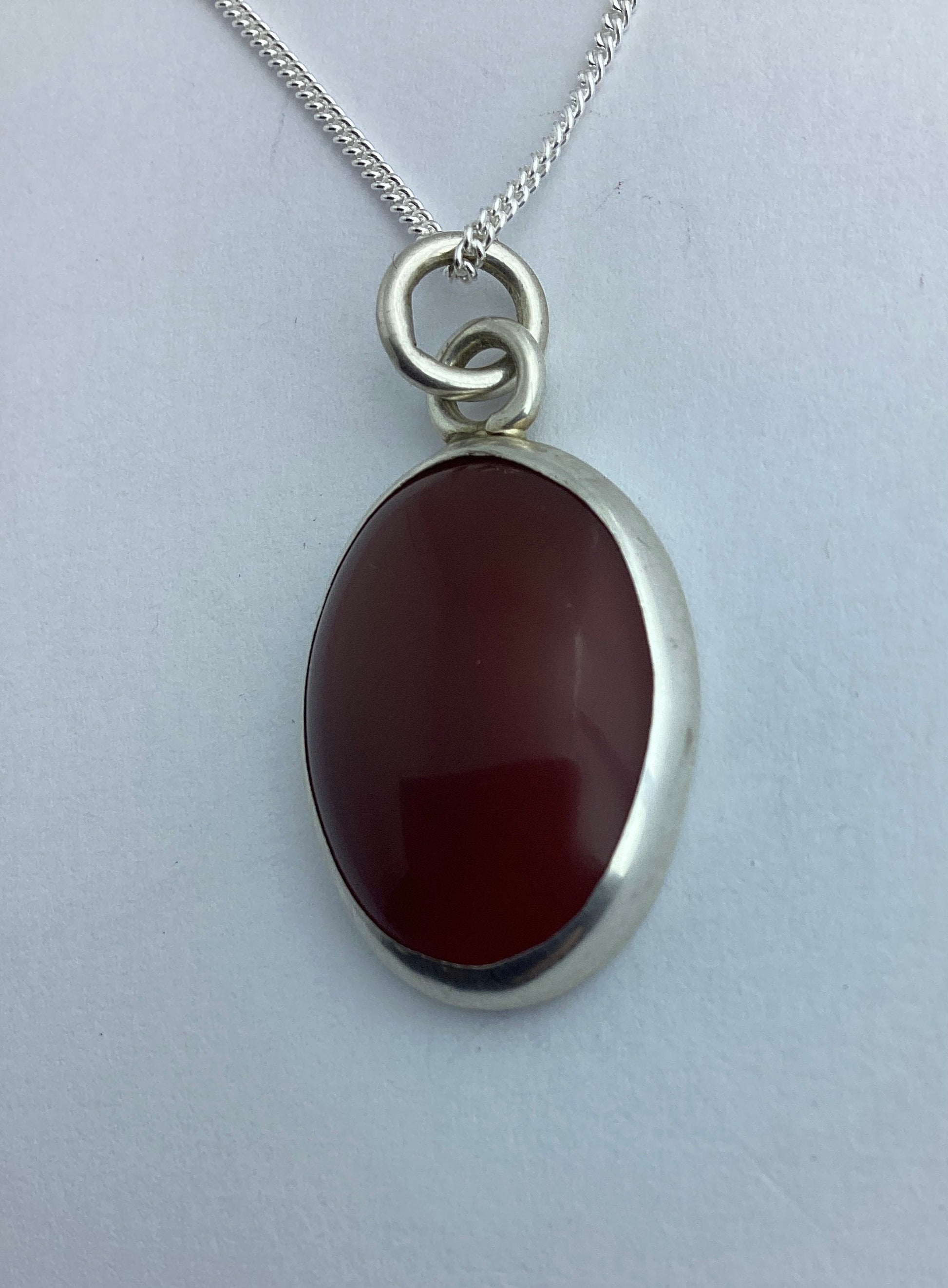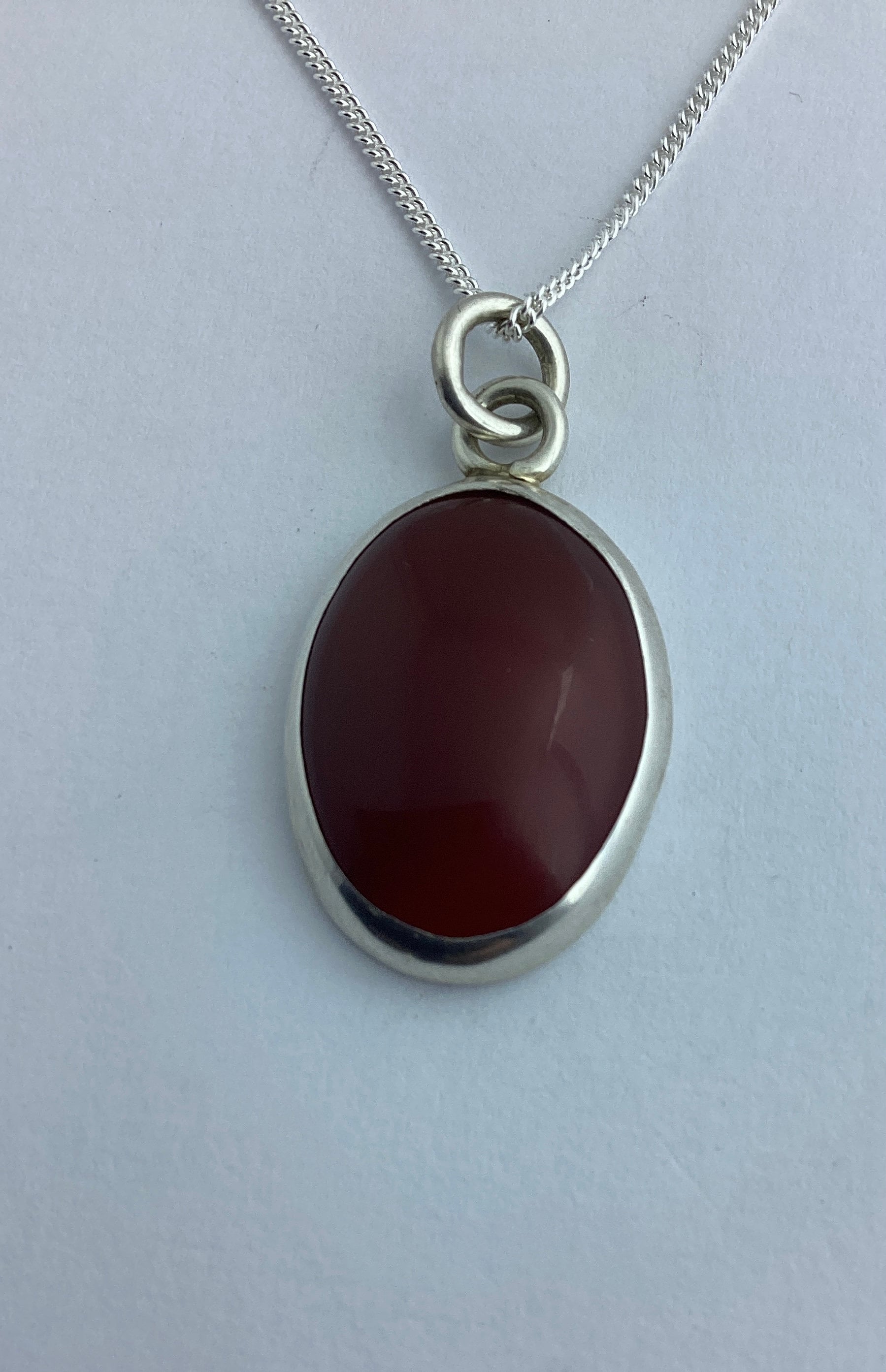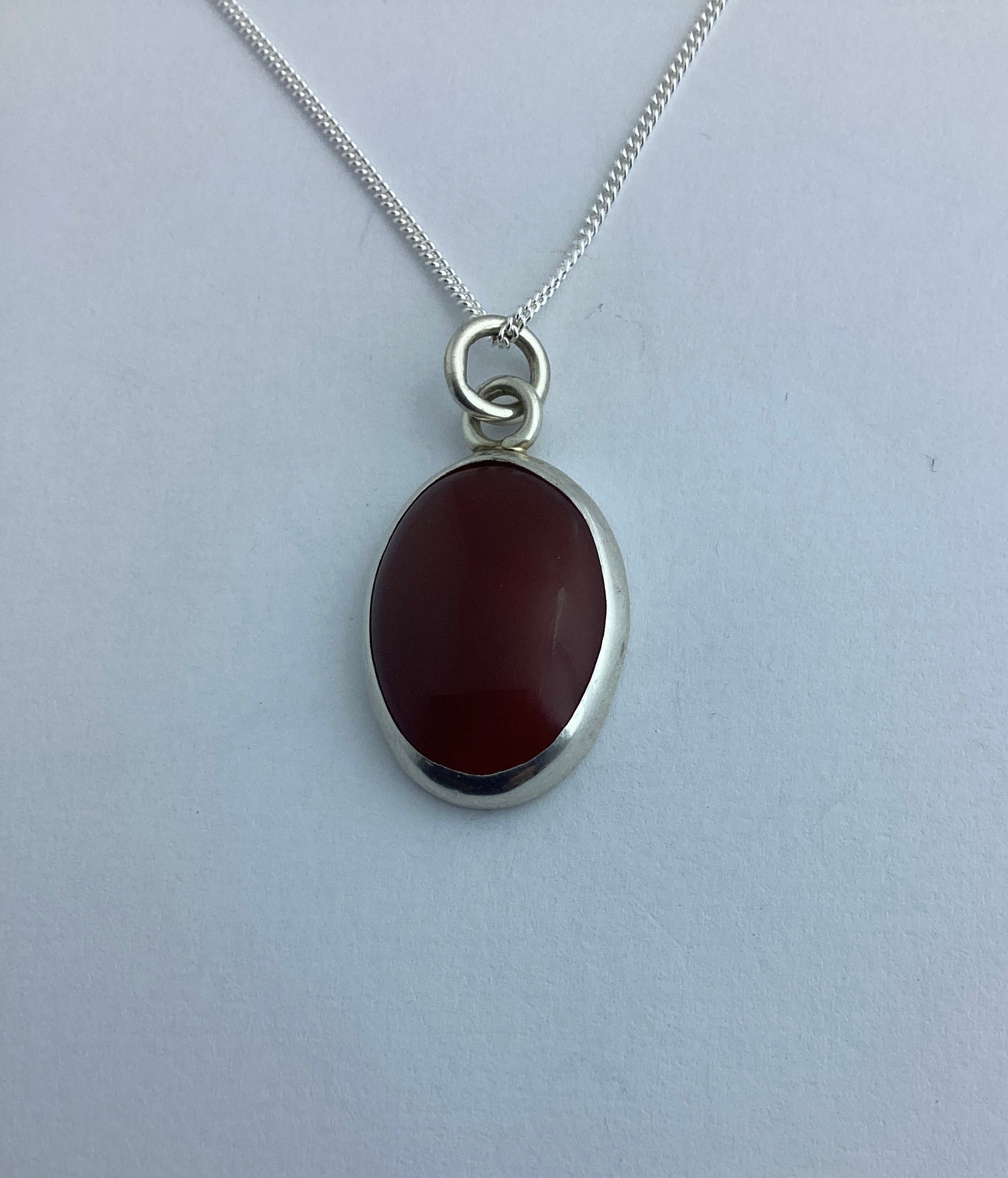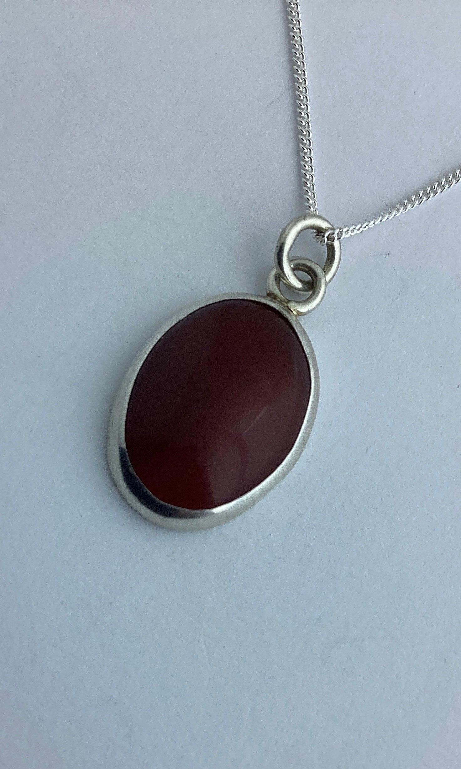 red agate pendant, solid sterling silver necklace, oval natural red gemstone, 18” chain