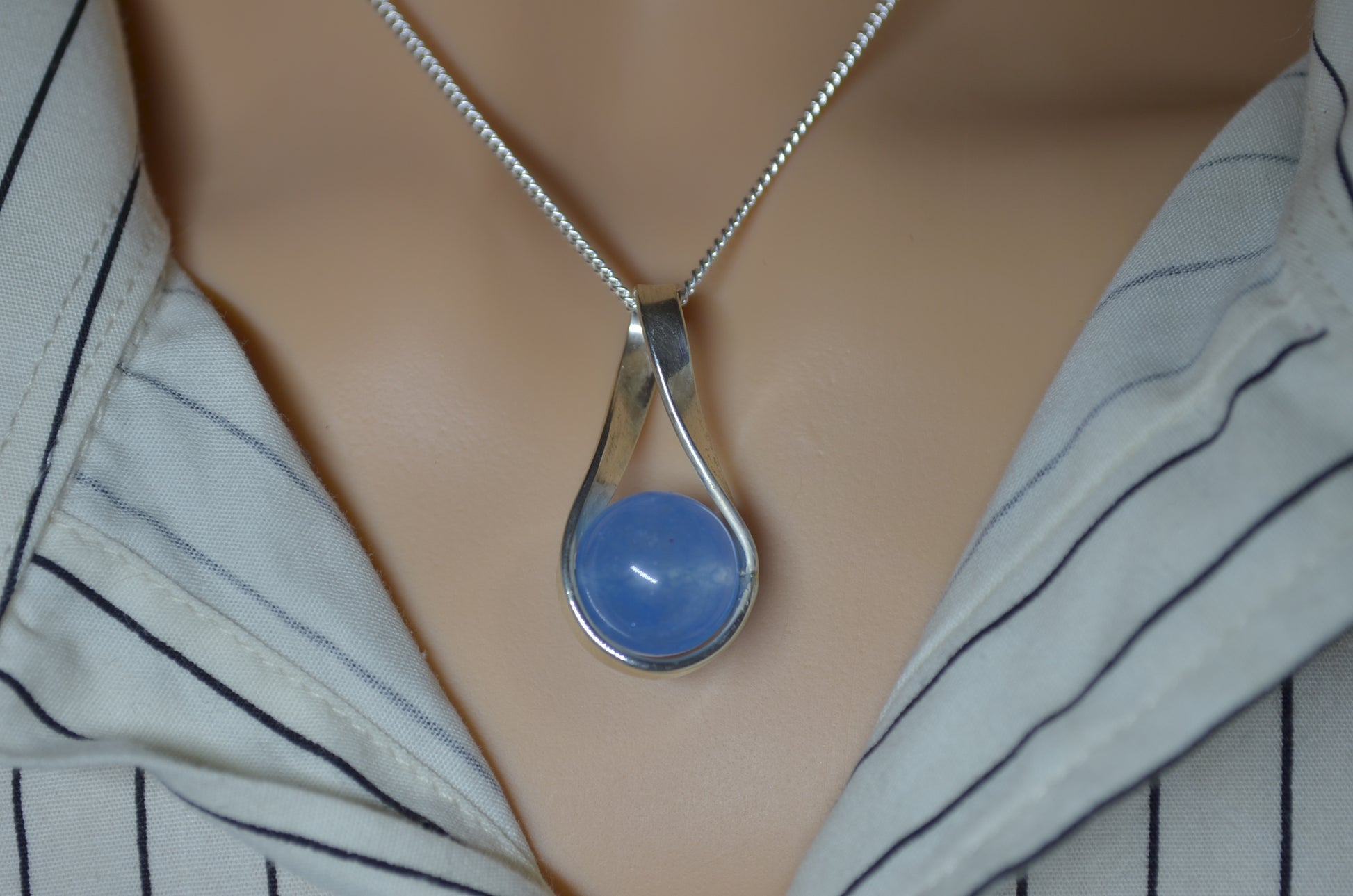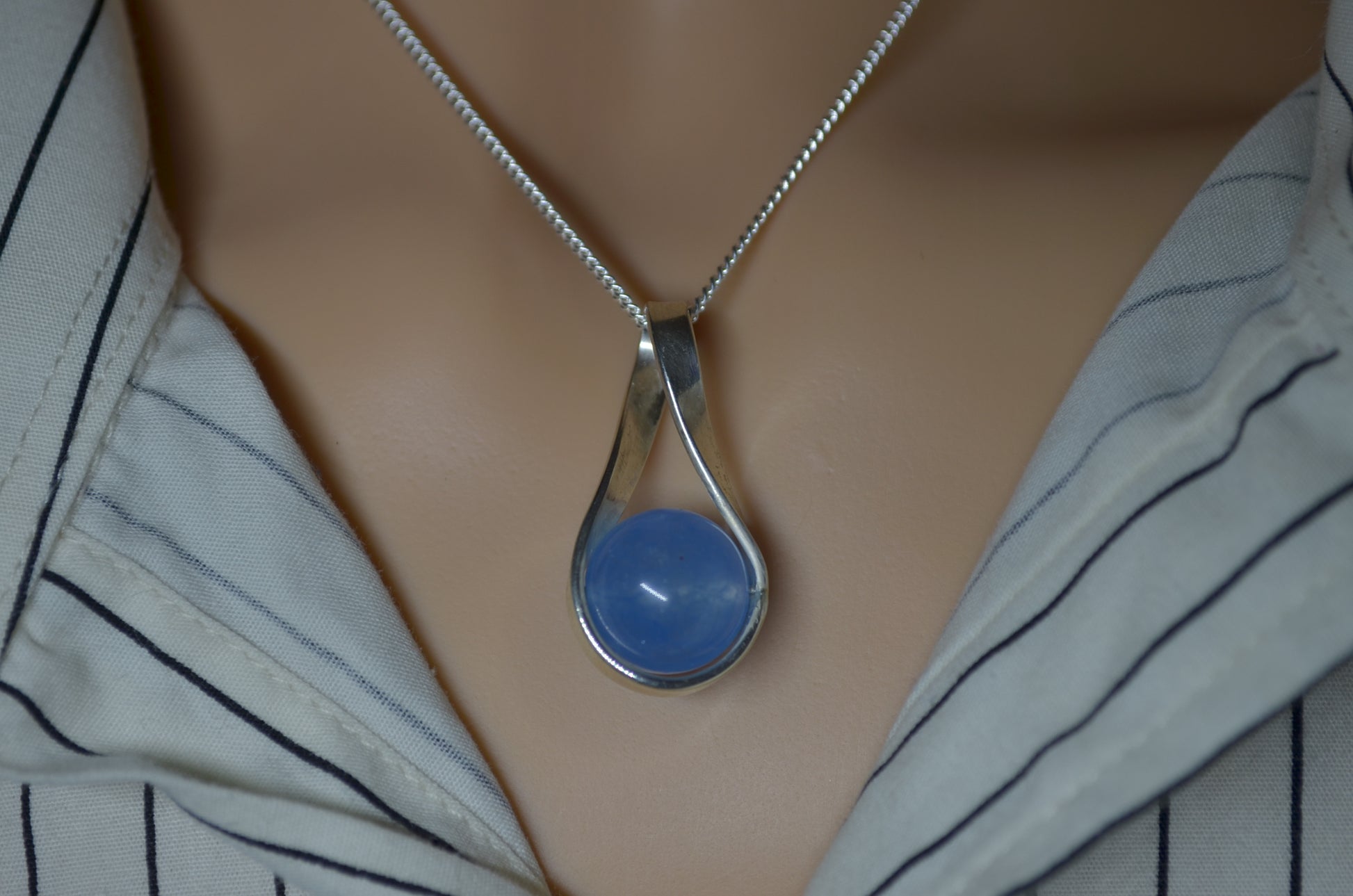 handmade from solid sterling silver and natural blue (dyed) jade.
