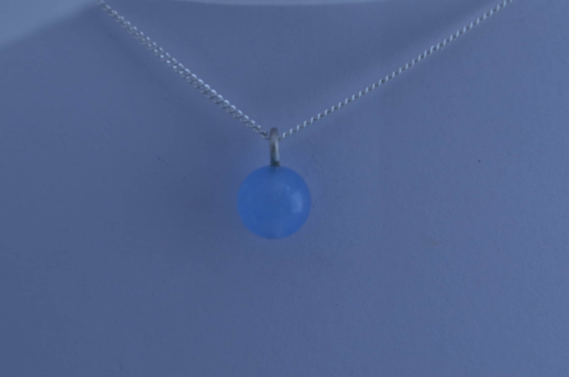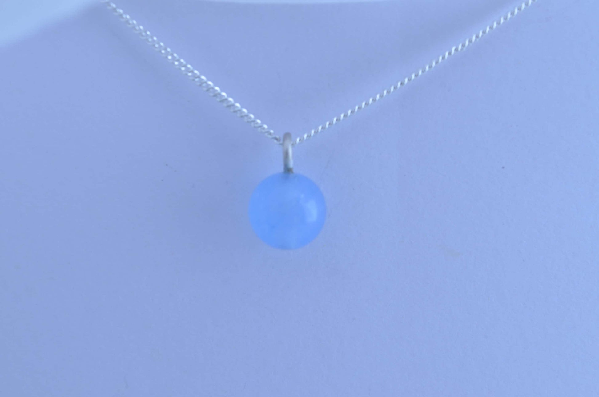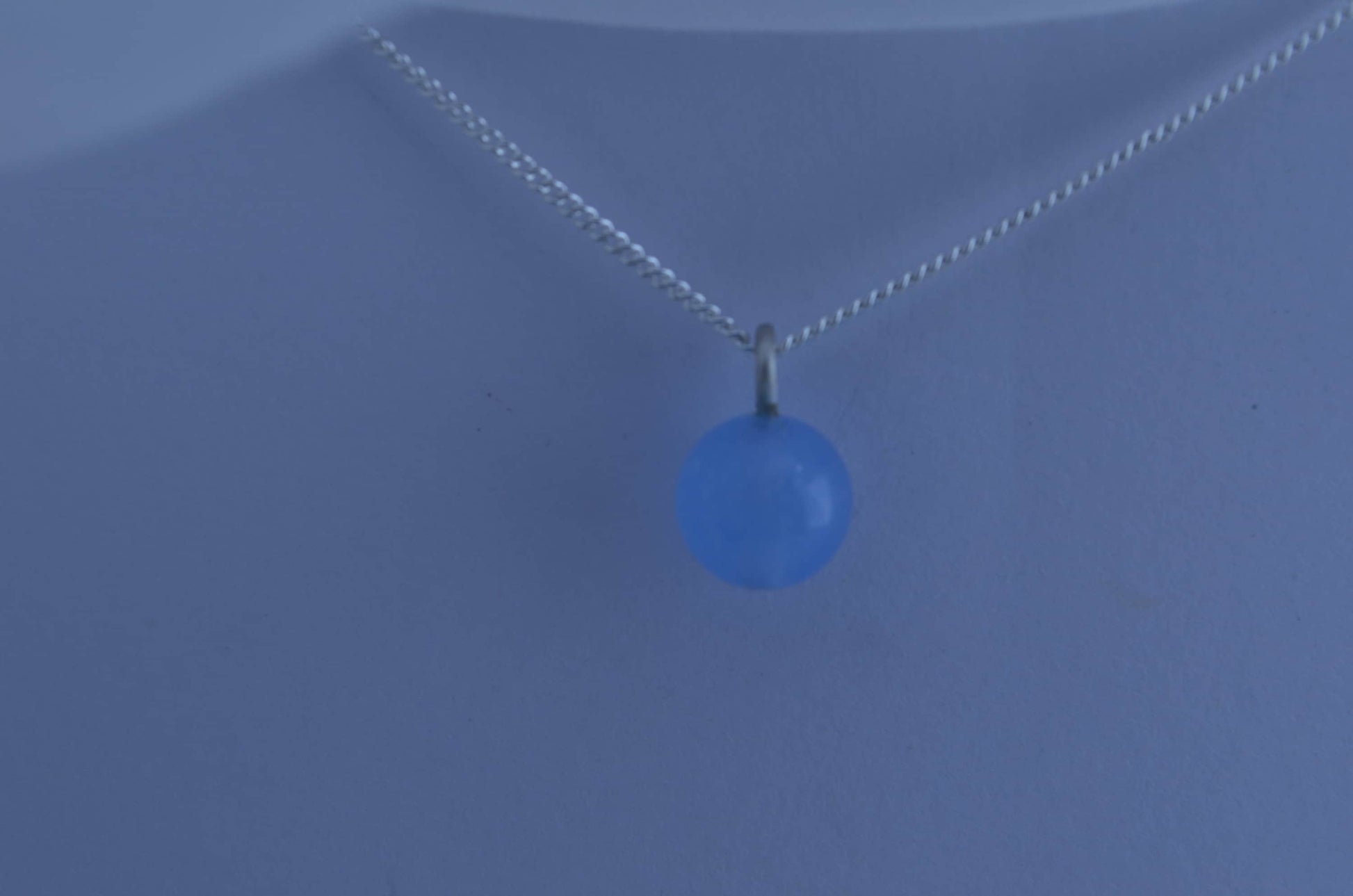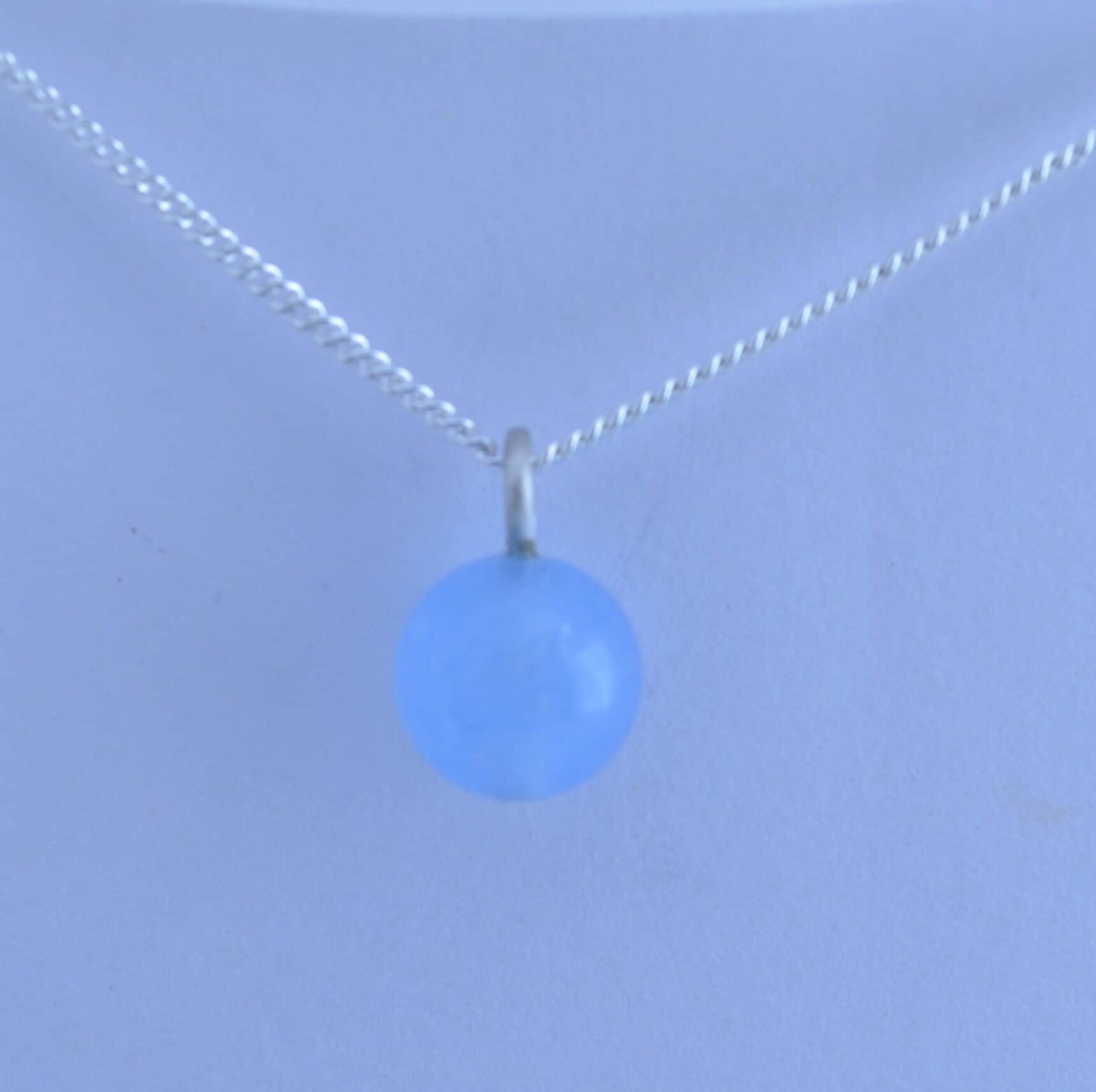 Silver blue jade charm necklace, round stone pendant, natural materials, 18” chain