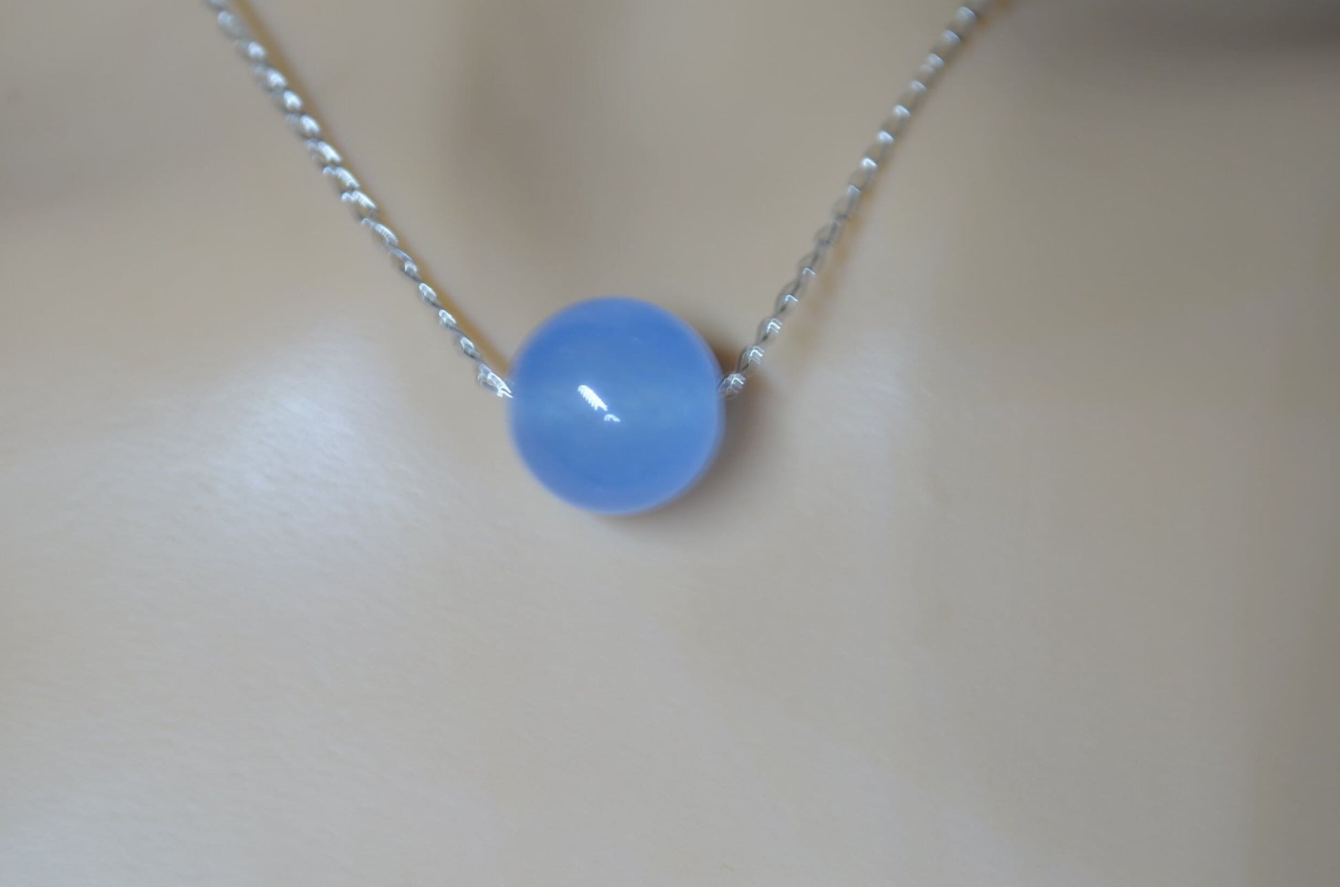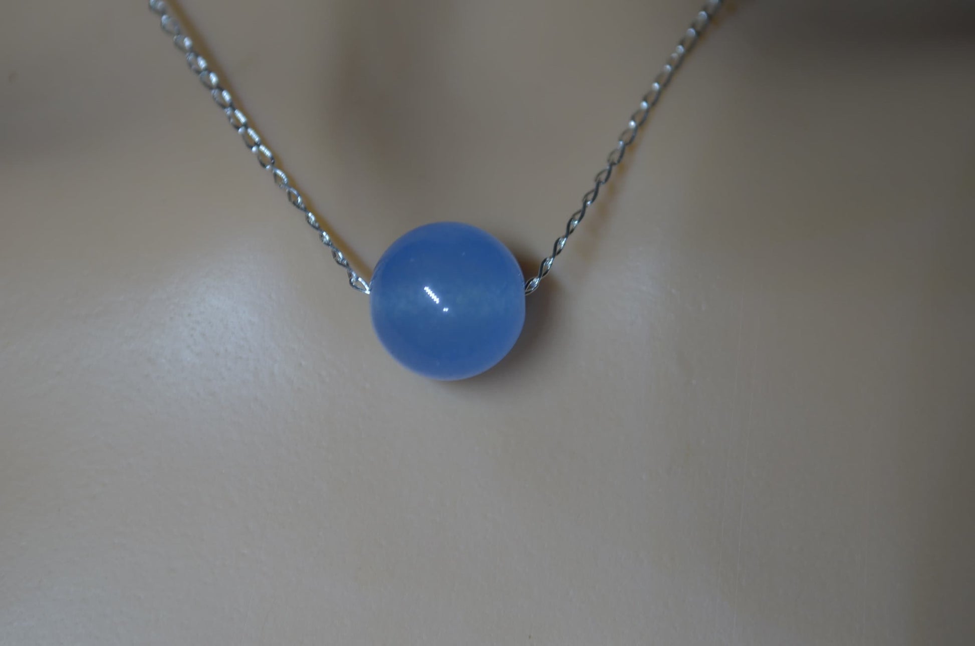 Silver blue jade necklace, round stone bead, natural materials, 18” chain