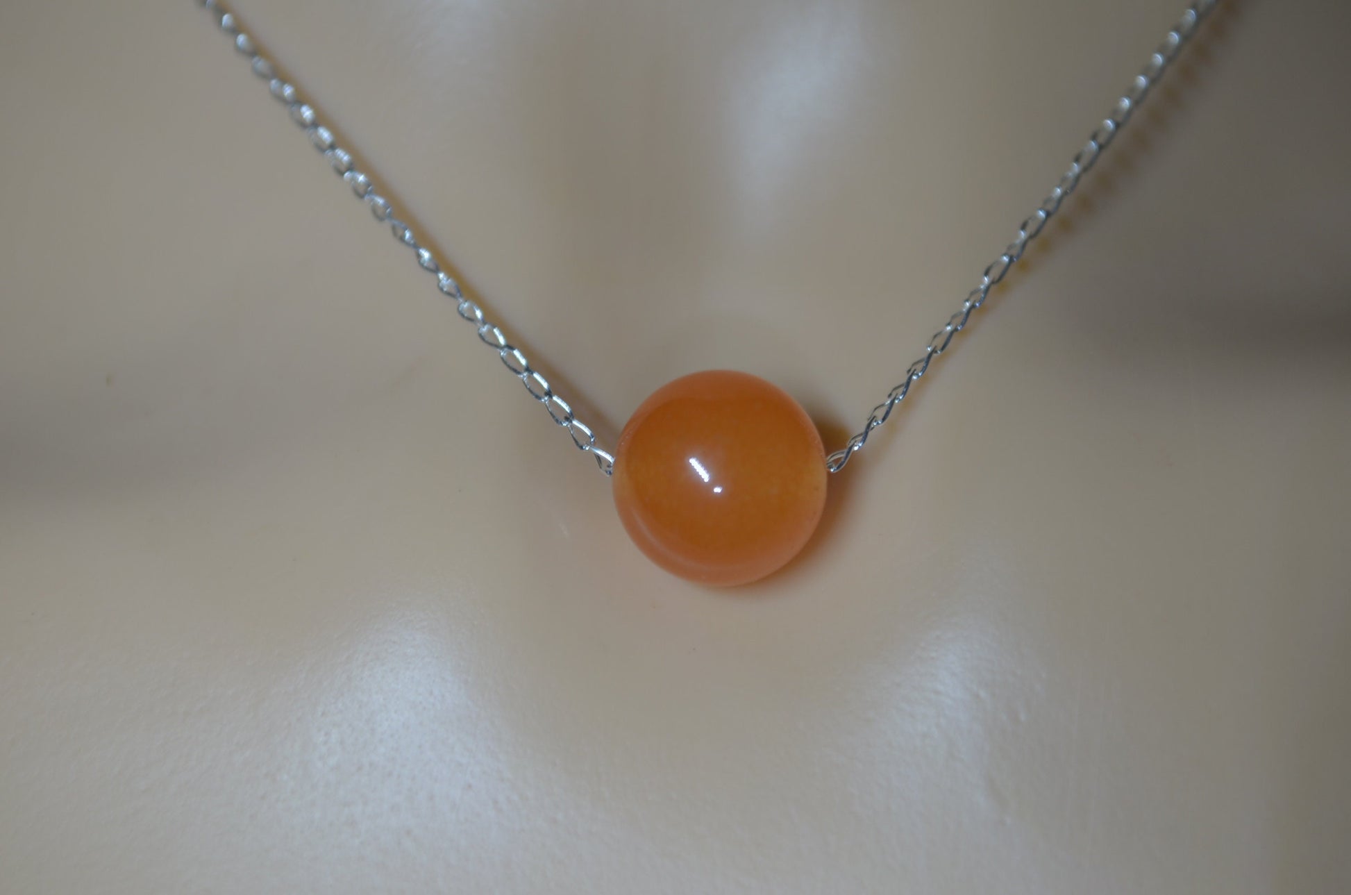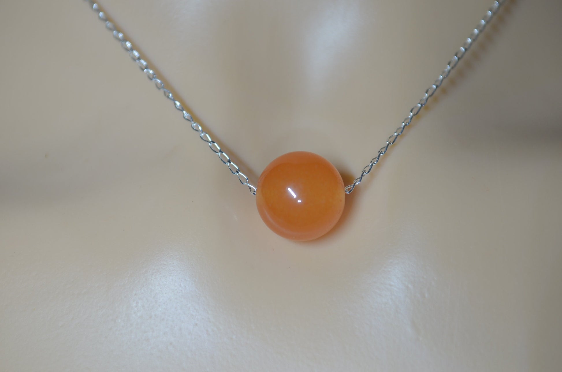 silver chain red aventurine bead necklace, natural round shape gemstone, 18” chain