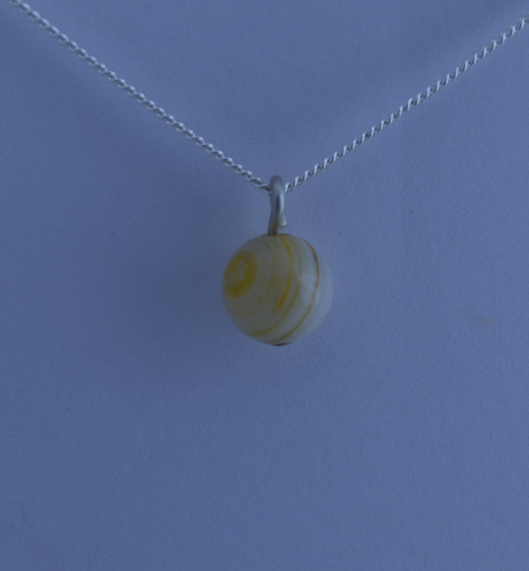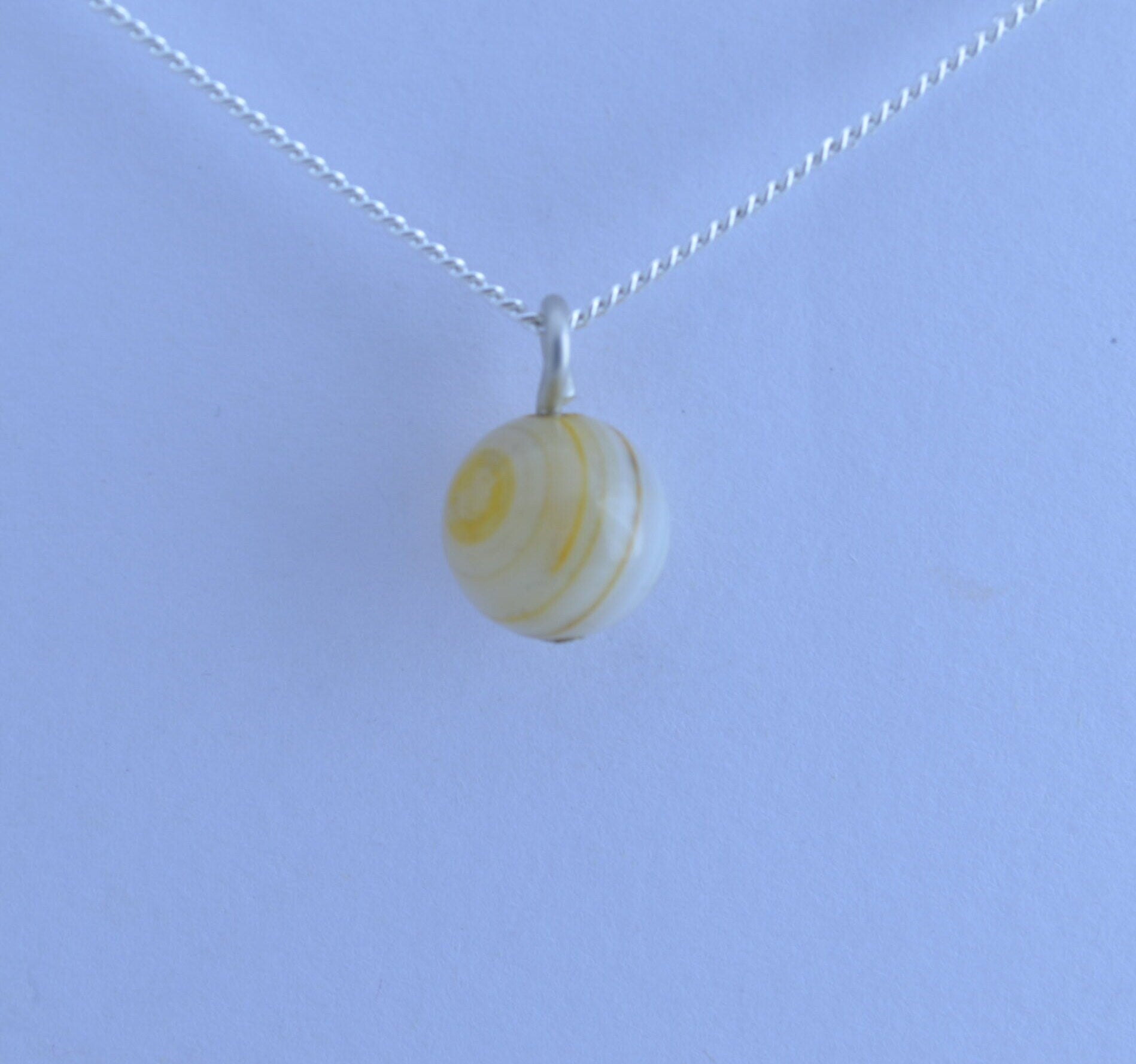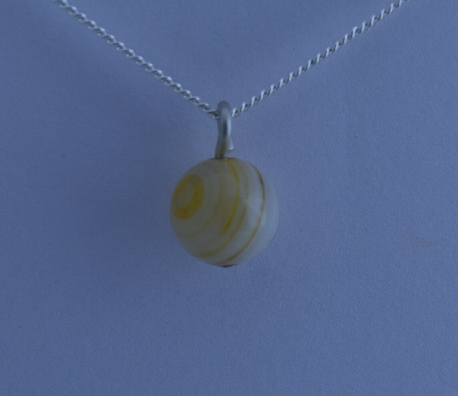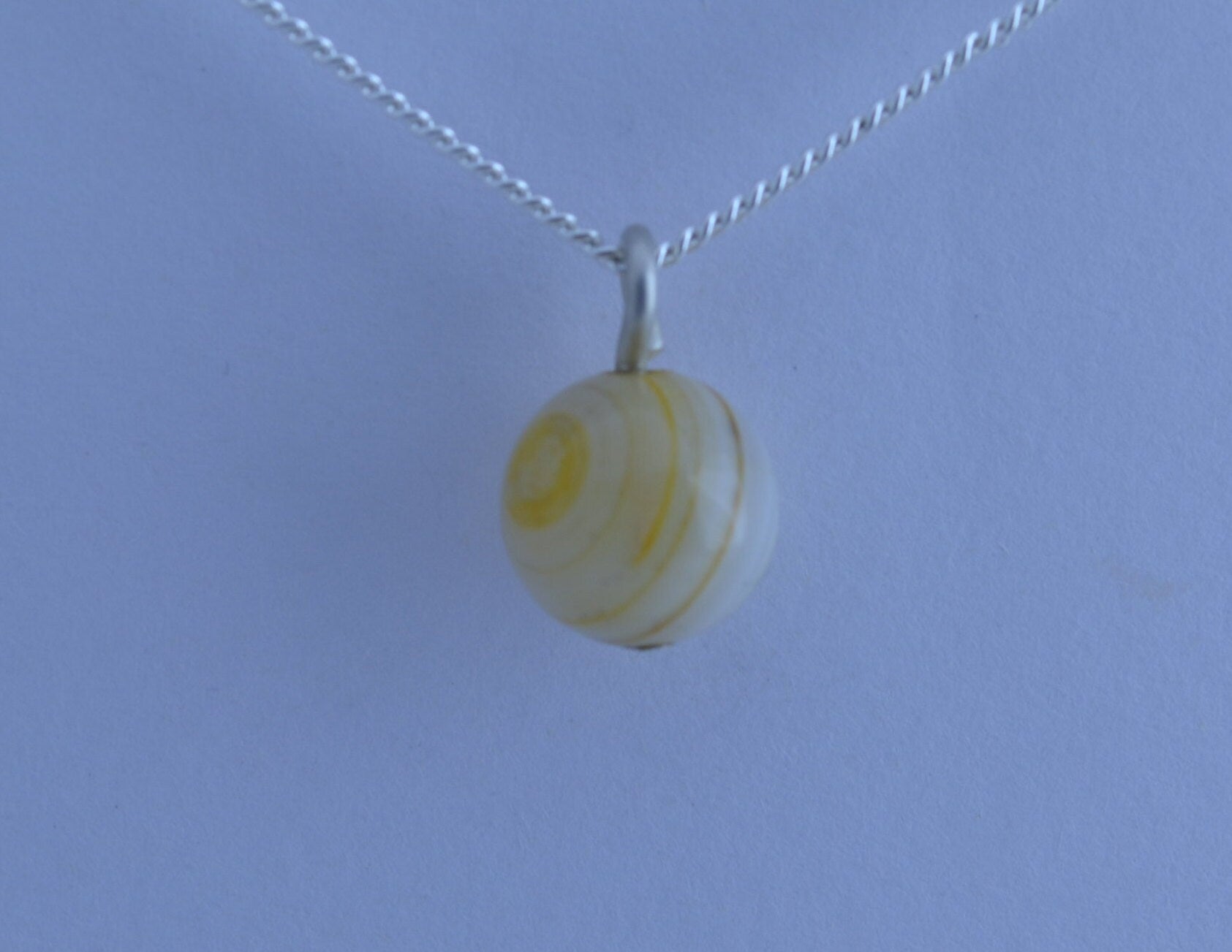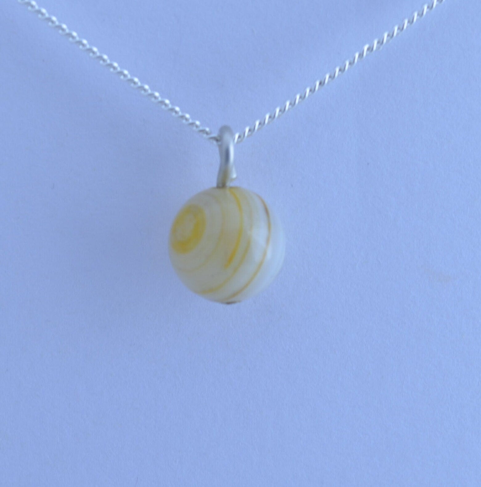 silver charm necklace, yellow agate pendant, round shape natural gemstone, 18” chain