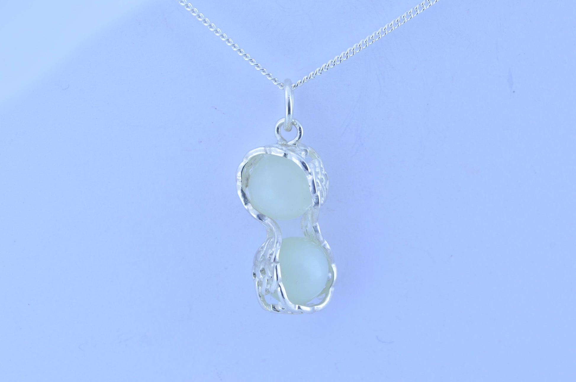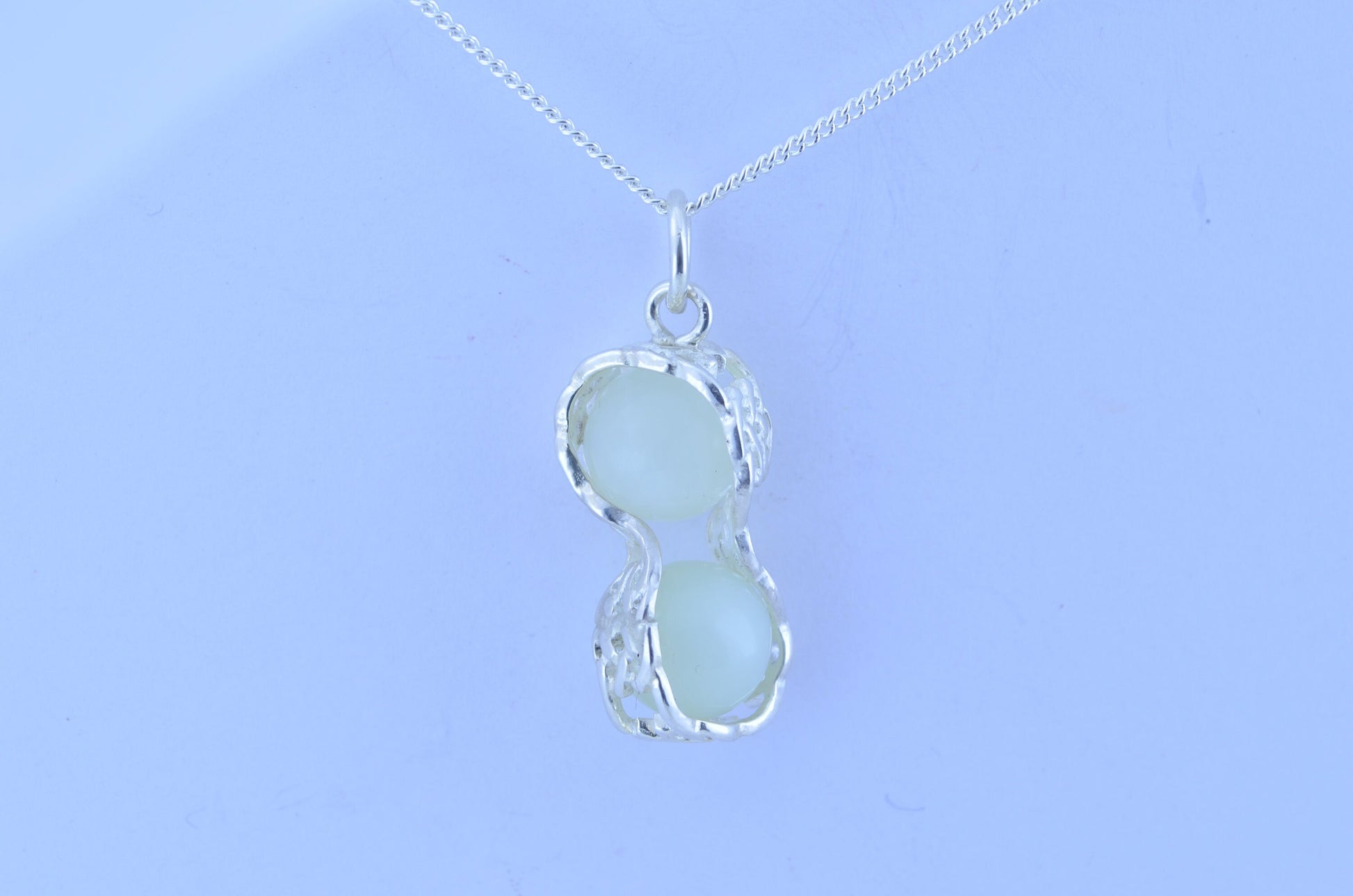 silver jade long pendant, round shape green beads necklace, natural gemstones, 18” chain