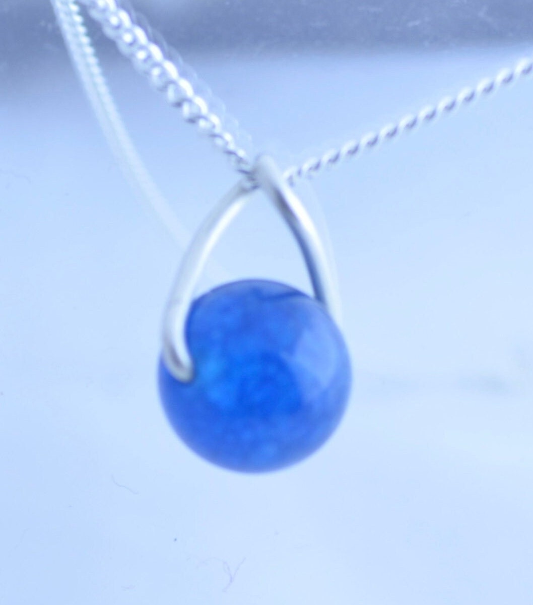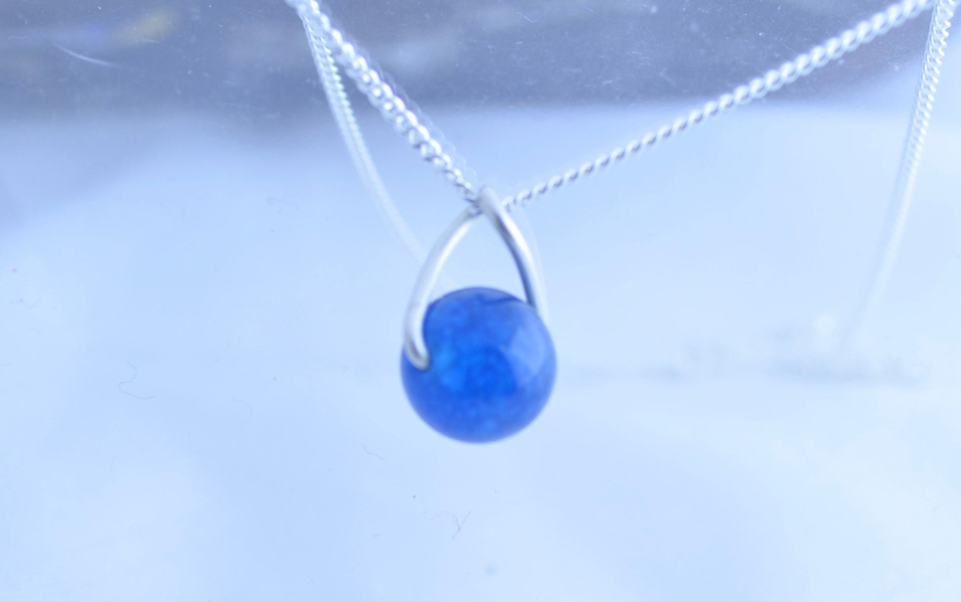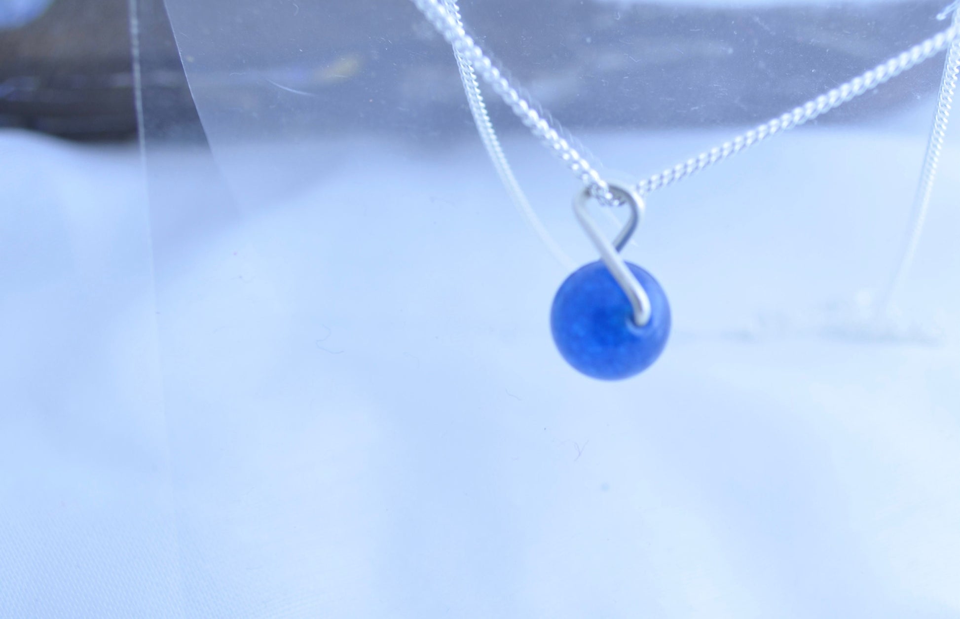 Silver necklace, blue round Apatite gemstone pendant, natural materials, 18” chain