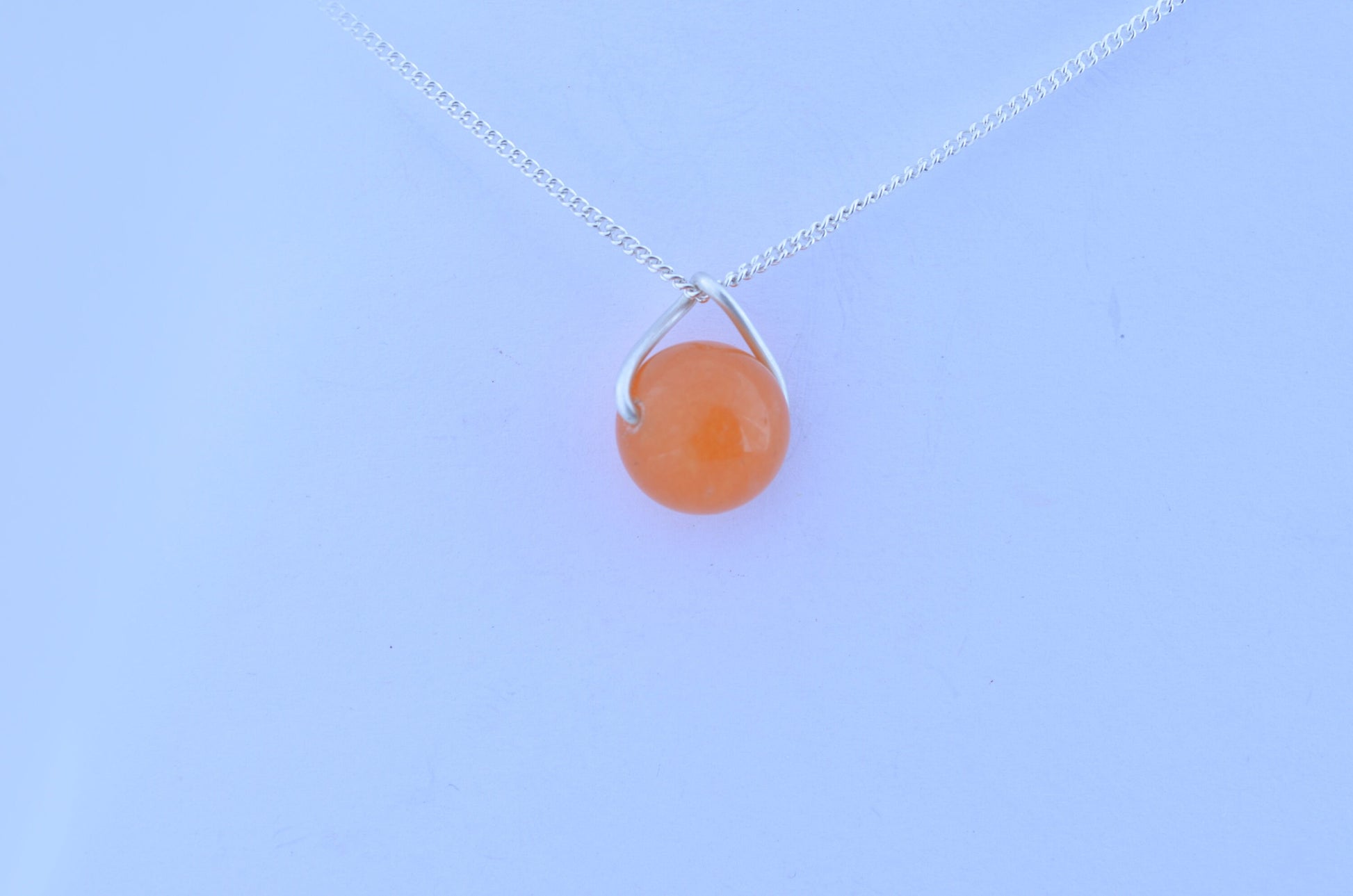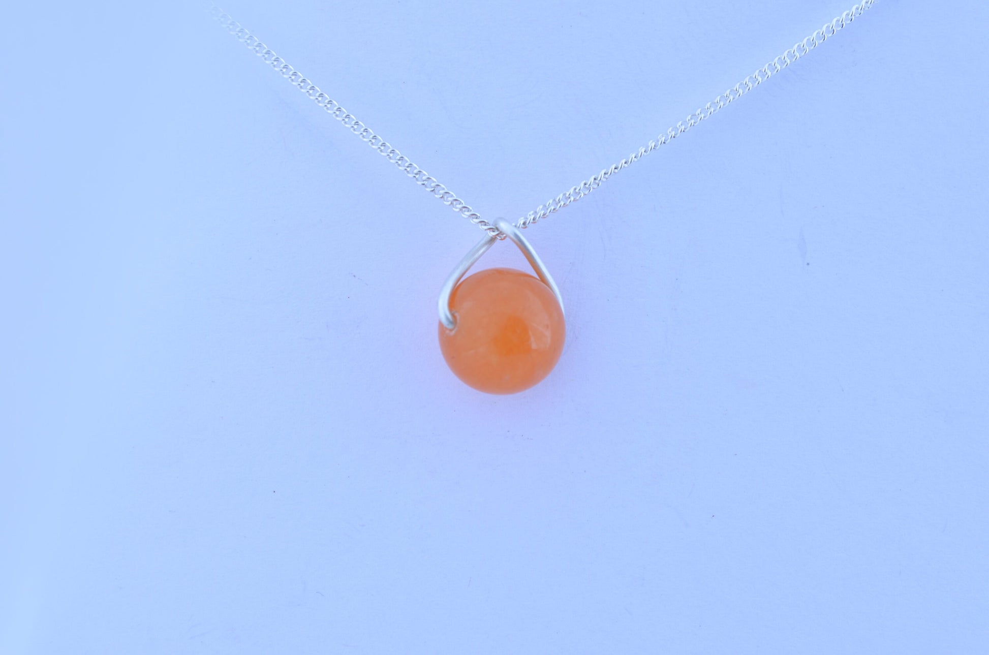 silver red aventurine pendant, natural round shape gemstone, 18” chain necklace