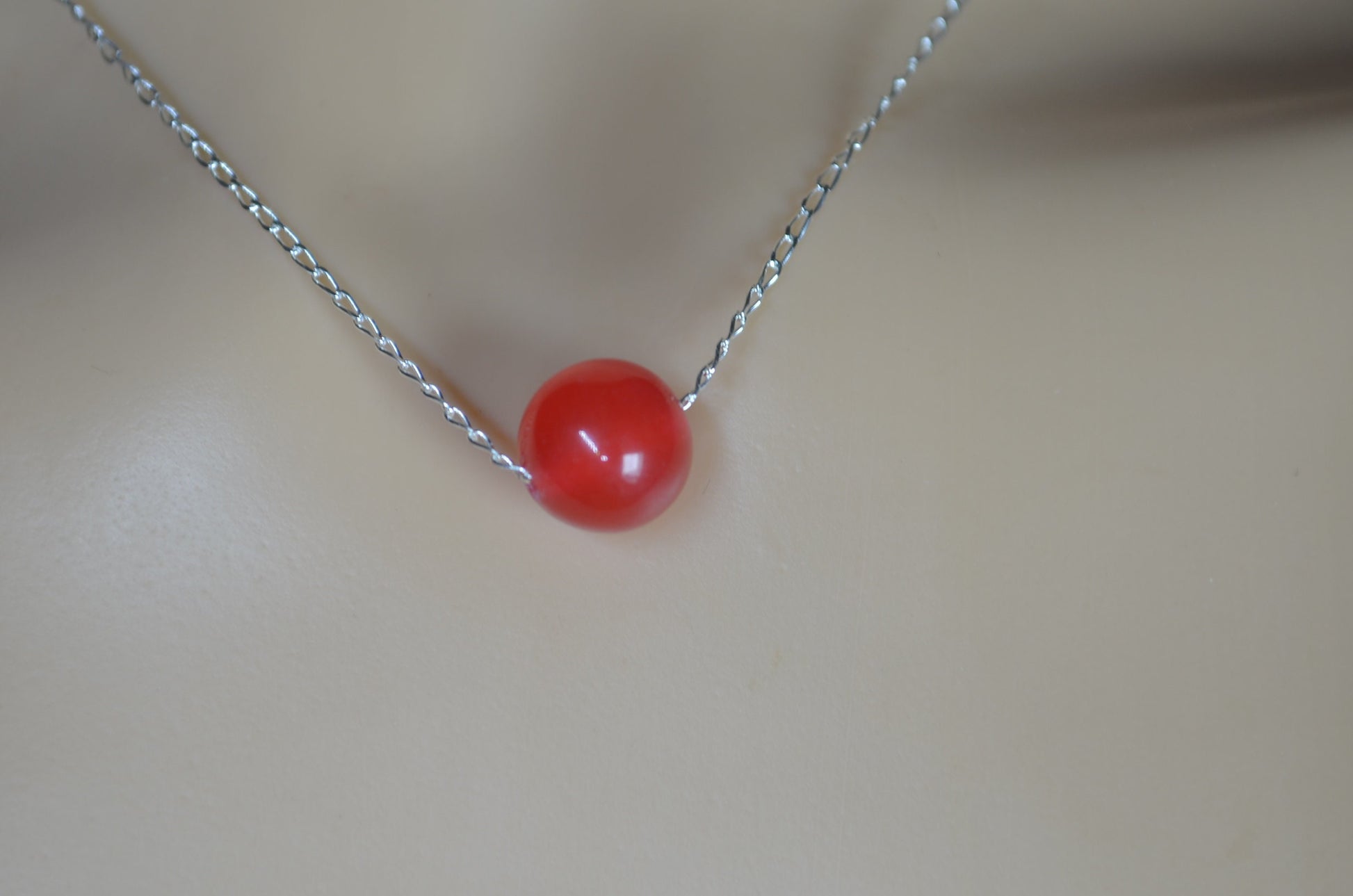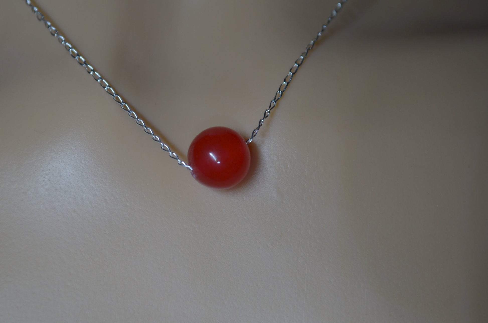 handmade from solid sterling silver and red (dyed) jade small pendant.