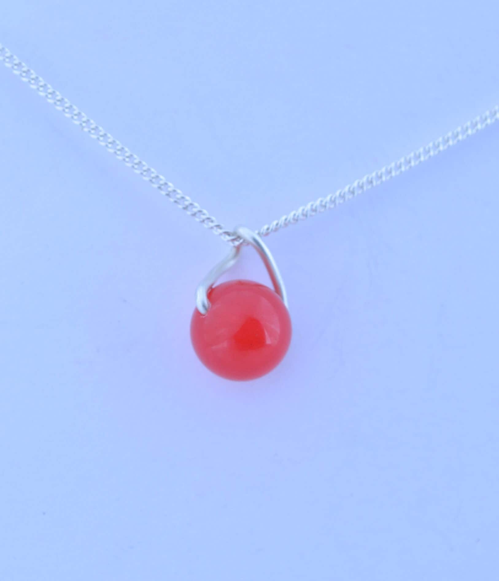 silver red jade necklace