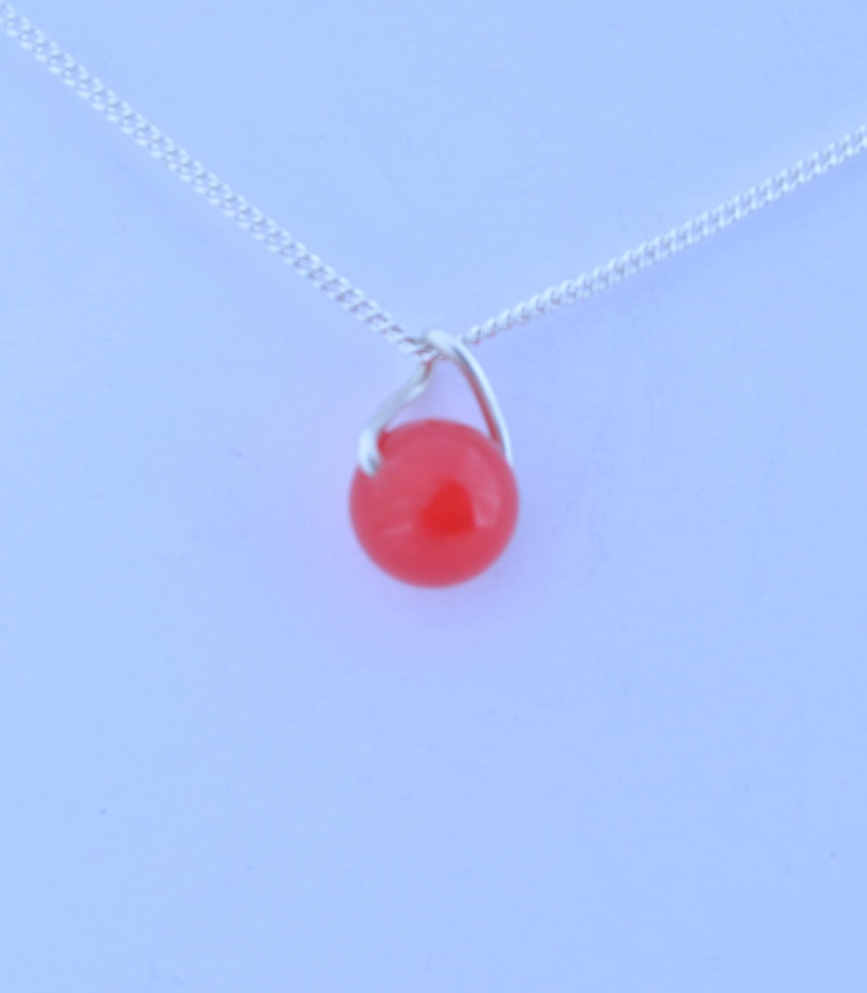 handmade from solid sterling silver and red (dyed) jade small pendant.