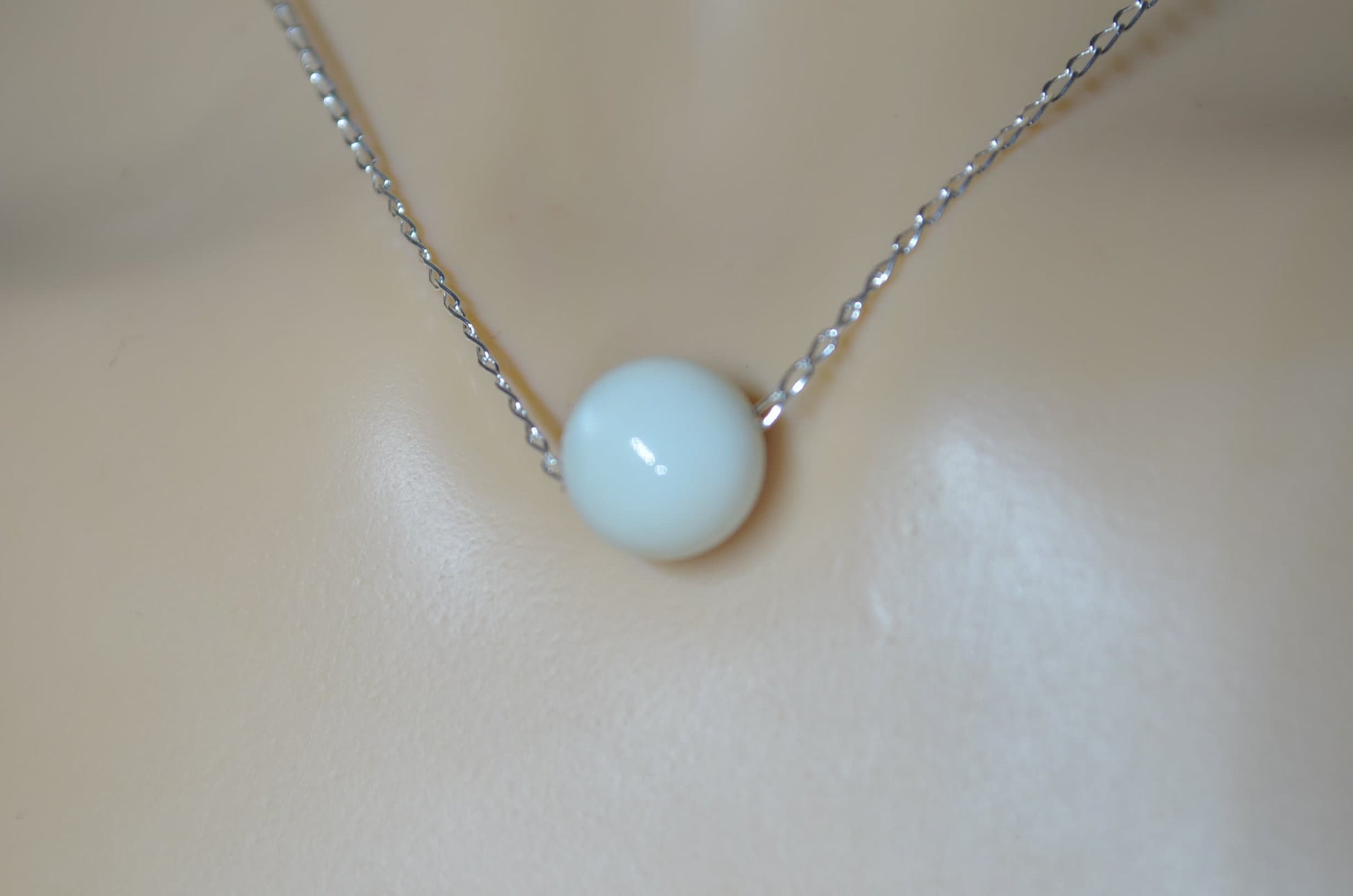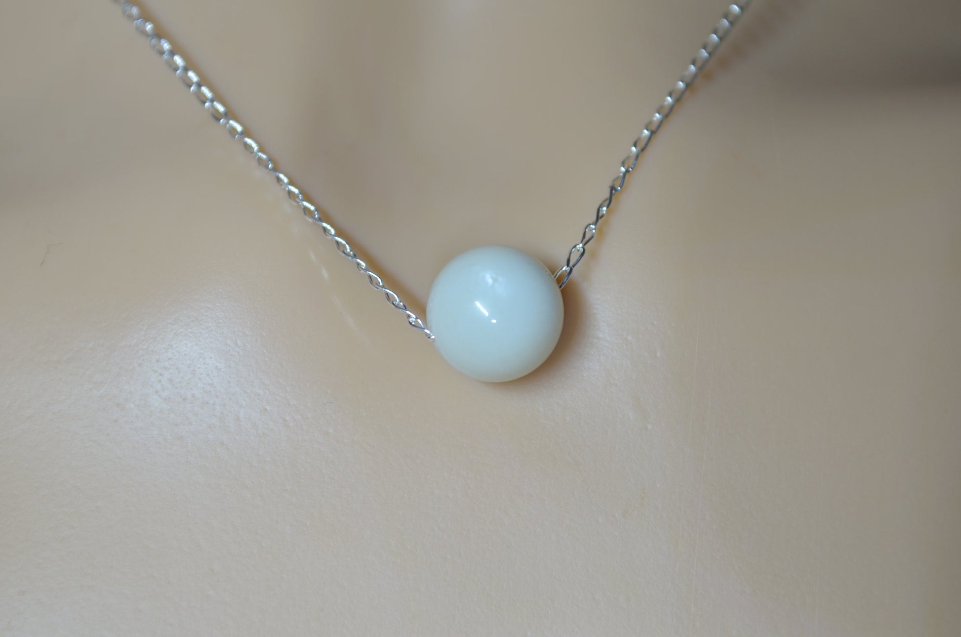white moonstone bead silver necklace, round shape natural stone pendant, 18” chain